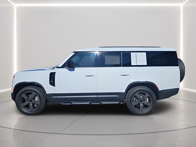 Fuji White 2026 Land Rover Defender 130 S AWD 8-Speed Automatic 3.0L I6 14-Way Heated & Cooled Electric Memory Front Seats, 20" Wheels, 2nd Row Heated & Cooled Captain Chairs, 4-Zone Climate Control, Advanced Tow Assist, All Terrain Progress Control (ATPC), Black Fixed Side Steps, Configurable Terrain Response, Extended Leather Upgrade, Head-Up Display, Heated 3rd Row Seats, Leather Gearshift, Leather Steering Wheel, Premium Upgrade Interior Pack, Terrain Response 2, Tow Hitch Receiver, Towing Pack, Wheels: 20" Satin Dark Grey Style 5098, Wi-Fi Enabled w/Data Plan, 11 Speakers, 12-Way Heated & Cooled Electric Memory Front Seats, 3rd row seats: split-bench, 4-Wheel Disc Brakes, ABS brakes, Adaptive suspension, Air Conditioning, Alloy wheels, AM/FM radio: SiriusXM, Apple CarPlay & Android Auto, Auto High-beam Headlights, Auto tilt-away steering wheel, Auto-dimming door mirrors, Auto-dimming Rear-View mirror, Automatic temperature control, Brake assist, Bumpers: body-color, Compass, Delay-off headlights, Driver door bin, Driver vanity mirror, Dual front impact airbags, Dual front side impact airbags, Electronic Stability Control, Exterior Parking Camera Rear, Four wheel independent suspension, Front anti-roll bar, Front Bucket Seats, Front Center Armrest, Front dual zone A/C, Front fog lights, Front reading lights, Fully automatic headlights, Garage door transmitter: HomeLink, Heated door mirrors, Heated front seats, Heated steering wheel, Illuminated entry, Low tire pressure warning, Memory seat, Navigation system: Connected Navigation PIVI Pro, Occupant sensing airbag, Outside temperature display, Overhead airbag, Overhead console, Panic alarm, Passenger door bin, Passenger vanity mirror, Power door mirrors, Power driver seat, Power moonroof, Power passenger seat, Power steering, Power windows, Radio data system, Radio: Meridian Sound System, Rain sensing wipers, Rear air conditioning, Rear anti-roll bar, Rear fog lights, Rear reading lights, Rear seat center armrest, Rear window defroster, Rear window wiper, Remote keyless entry, Resist Seat Trim, Security system, Speed control, Speed-sensing steering, Speed-Sensitive Wipers, Split folding rear seat, Steering wheel memory, Steering wheel mounted audio controls, Tachometer, Telescoping steering wheel, Tilt steering wheel, Traction control, Trip computer, Variably intermittent wipers, Ventilated front seats.