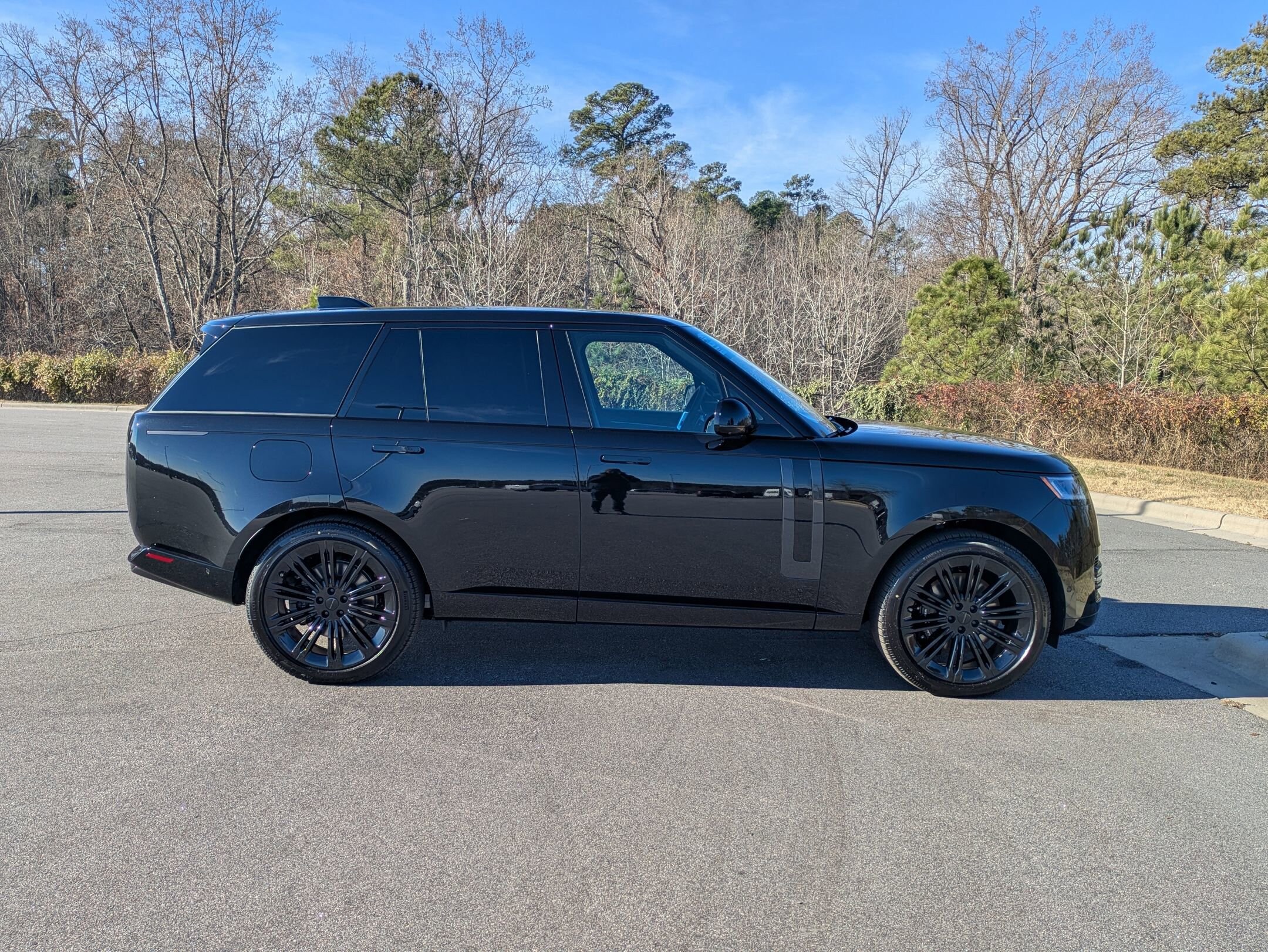 The 2026 Land Rover Range Rover SE 530PS is a new luxury SUV in transit to Land Rover Raleigh. This vehicle features a 4.4L V-8 engine with a mild hybrid electric powertrain, offering both performance and efficiency. The interior is designed for comfort and sophistication, with Ebony Windsor leather seats, genuine wood trim, and advanced technology features. The Range Rover combines elegance, power, and comfort, providing a refined driving experience for discerning passengers.