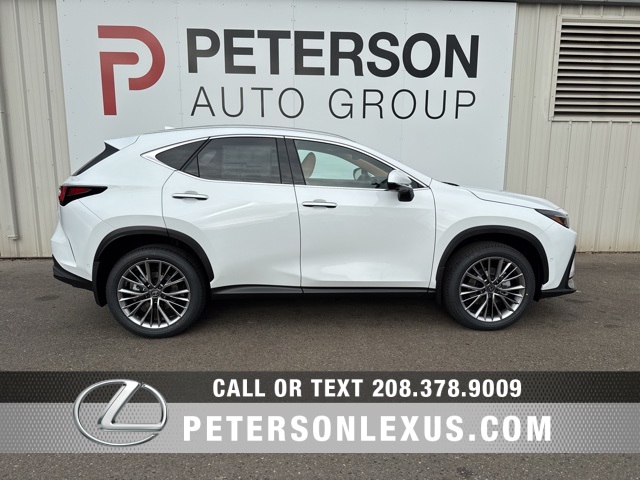 Ultra White 2026 Lexus NX 350h Luxury AWD Continuously Variable (ECVT) 2.5L I4 DOHC 16V. 41/37 City/Highway MPG. Here at Peterson Lexus we are proud to offer you Treasure Valleys finest selection of new and quality pre-owned vehicles, with our upfront pricing, fully transparent buying process and our customer focused sales team, you can be assured that there is no better place to shop for your next car, truck or SUV. For over 90 years The Peterson Family has been serving the people and communities of Boise, Meridian, Eagle, Nampa, Caldwell, Kuna, Star, Middleton, Homedale, Marsing, Melba, Murphy, Parma, Propane, and more.