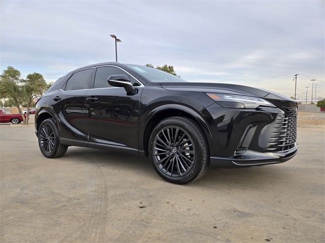 The 2026 Lexus RX 450h PLUS in Caviar features a 2.5L I4 DOHC 16V engine and a luxurious Palomino NuLuxe and Ash Bamboo interior. This vehicle is equipped with advanced premium options and packages, including a panoramic view monitor, illuminated door sills, and a Lexus Multimedia screen protector. Enjoy the comfort and technology of this hybrid SUV, designed for both efficiency and driving pleasure.