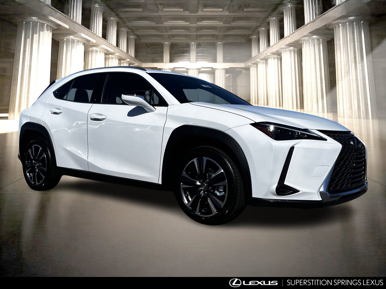 2026 Ultra White Lexus UX 300h 2.0L I4 DOHC 16V. 45/41 City/Highway MPG.