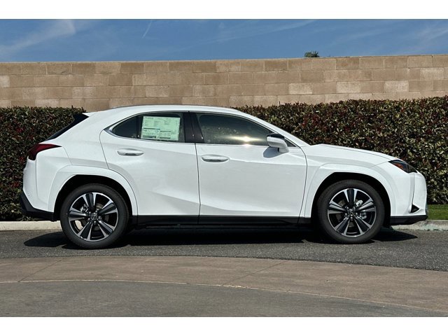 2026 Lexus UX Ultra White 2.0L I4 DOHC 16V. 45/41 City/Highway MPG 2.0L I4 DOHC 16V. This vehicle has the following features: 2.0L I4 DOHC 16V, 4-Wheel Disc Brakes, ABS brakes, Air Conditioning, Alloy wheels, AM/FM radio: SiriusXM, Apple CarPlay/Android Auto, Auto High-beam Headlights, Automatic temperature control, Brake assist, Bumpers: body-color, Compass, Delay-off headlights, Driver door bin, Driver vanity mirror, Dual front impact airbags, Dual front side impact airbags, Electronic Stability Control, Emergency communication system: Safety Connect (10-year trial), Exterior Parking Camera Rear, Four wheel independent suspension, Front anti-roll bar, Front Bucket Seats, Front Center Armrest, Front dual zone A/C, Front reading lights, Fully automatic headlights, Heated door mirrors, Illuminated entry, Knee airbag, Leather Shift Knob, Leather steering wheel, Lexus Premium Sound System, Low tire pressure warning, NuLuxe Seat Trim, Occupant sensing airbag, Outside temperature display, Overhead airbag, Panic alarm, Passenger door bin, Passenger vanity mirror, Power door mirrors, Power driver seat, Power passenger seat, Power steering, Power windows, Radio data system, Rear anti-roll bar, Rear reading lights, Rear side impact airbag, Rear window defroster, Rear window wiper, Remote keyless entry, Security system, Speed control, Speed-sensing steering, Split folding rear seat, Spoiler, Steering wheel mounted audio controls, Tachometer, Telescoping steering wheel, Tilt steering wheel, Traction control, Trip computer, Turn signal indicator mirrors, and Variably intermittent wipers.