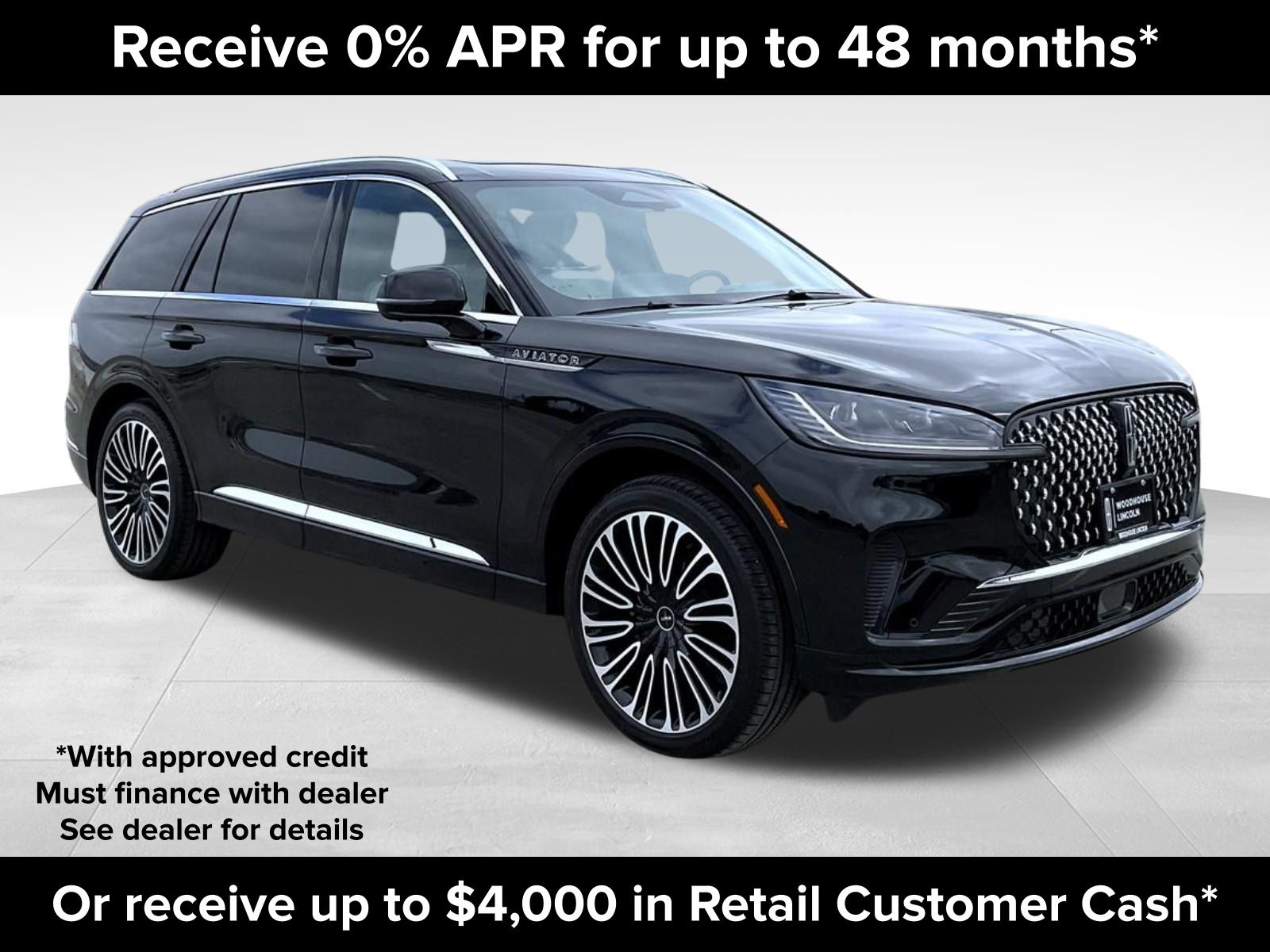 The 2026 Lincoln Aviator Black Label AWD is a new SUV on the lot at Woodhouse Lincoln. It features a 3.0L V6 engine, all-wheel drive, and a luxurious interior with Green Moonbeam seating. The vehicle is equipped with advanced technology, a panoramic power moonroof, and a premium Revel Ultima 3D audio system. The price of this new Aviator is $85,874.