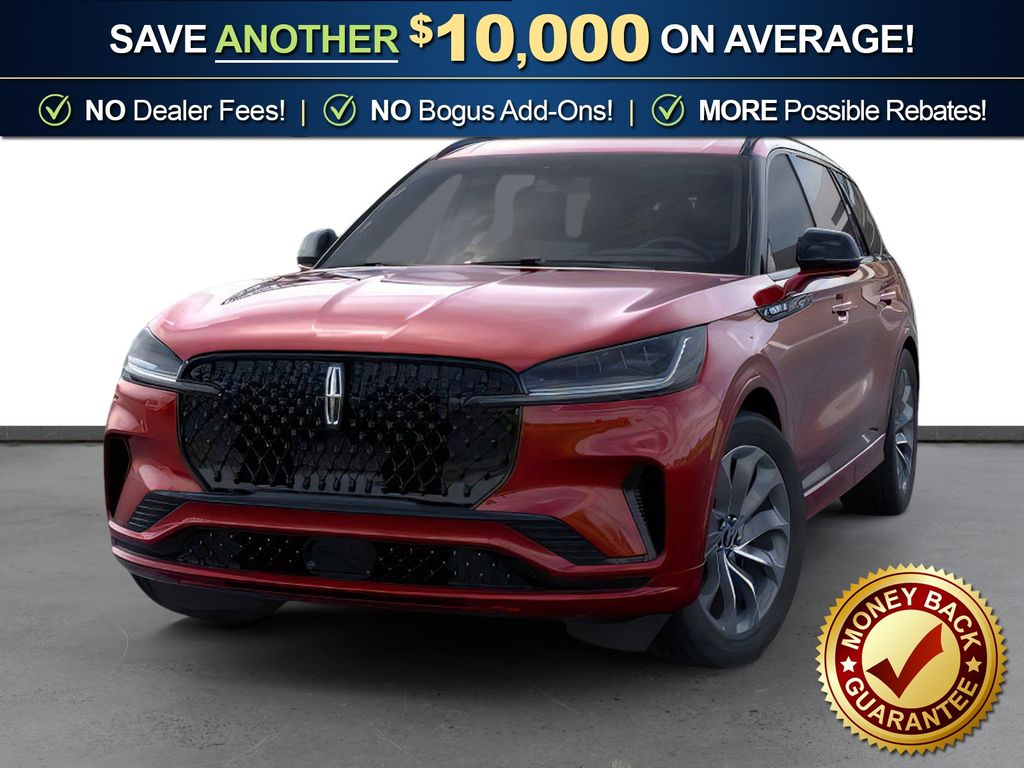 Red Carpet Tinted Clearcoat 2026 Lincoln Aviator Premiere NLT RWD 10-Speed Automatic 3.0L V6 10 Speakers, 3rd row seats: split-bench, 4-Wheel Disc Brakes, ABS brakes, Adaptive suspension, Air Conditioning, Alloy wheels, AM/FM radio: SiriusXM, Apple CarPlay/Android Auto, Audio memory, Auto High-beam Headlights, Auto-dimming door mirrors, Auto-dimming Rear-View mirror, Automatic temperature control, Black Exterior Elements, Body-Color Exterior Elements, Brake assist, Bumpers: body-color, Compass, Delay-off headlights, Driver door bin, Driver vanity mirror, Dual front impact airbags, Dual front side impact airbags, Electronic Stability Control, Emergency communication system: 911 Assist, Four wheel independent suspension, Front anti-roll bar, Front Bucket Seats, Front Center Armrest, Front dual zone A/C, Front reading lights, Fully automatic headlights, Garage door transmitter, Heads-Up Display, Heated door mirrors, Heated Front Driver and Passenger Seats, Heated front seats, Heated steering wheel, HVAC memory, Illuminated entry, Jet Appearance Package, Knee airbag, Leather steering wheel, Lincoln App, Lincoln BlueCruise Equipped (4-Years Included), Lincoln Connectivity Package (4-Years), Lincoln Digital Experience, Lincoln Soft Touch Comfort Seats, Low tire pressure warning, Memory seat, Navigation system: Google Maps, Occupant sensing airbag, Outside temperature display, Overhead airbag, Overhead console, Panic alarm, Passenger door bin, Passenger vanity mirror, Power door mirrors, Power driver seat, Power Liftgate, Power passenger seat, Power steering, Power windows, Radio data system, Radio: Lincoln Premium AM/FM/HD Audio System with 10 Speakers, Rain sensing wipers, Rear air conditioning, Rear anti-roll bar, Rear audio controls, Rear reading lights, Rear window defroster, Rear window wiper, Remote keyless entry, Security system, SiriusXM, Speed control, Speed-Sensitive Wipers, Split folding rear seat, Spoiler, Steering wheel mounted A/C controls, Steering wheel mounted audio controls, Tachometer, Telescoping steering wheel, Tilt steering wheel, Traction control, Trip computer, Turn signal indicator mirrors, Variably intermittent wipers.