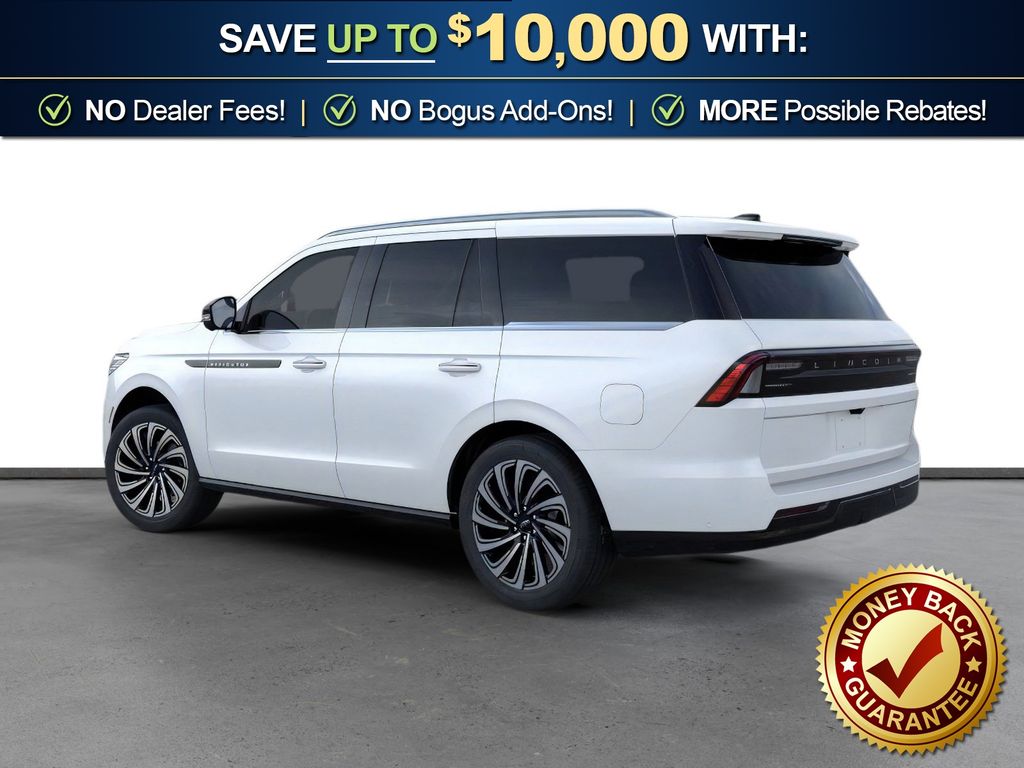 Star White Metallic Tri-Coat 2026 Lincoln Navigator Black Label NLT 4WD 10-Speed Automatic 3.5L V6 4WD, Invitation Opul Lthr Surf Leather, 28 Speakers, 3rd row seats: split-bench, 4-Wheel Disc Brakes, ABS brakes, Adaptive suspension, Adjustable pedals, Air Conditioning, Alloy wheels, AM/FM radio: SiriusXM with 360L, Apple CarPlay/Android Auto, Audio memory, Auto High-beam Headlights, Auto Start-Stop Technology, Auto tilt-away steering wheel, Auto-dimming door mirrors, Auto-dimming Rear-View mirror, Auto-leveling suspension, Automatic temperature control, BlueCruise Equipped (4-Years Included), Brake assist, Bumpers: body-color, Compass, Delay-off headlights, Driver door bin, Driver vanity mirror, Driver's Seat Mounted Armrest, Dual front impact airbags, Dual front side impact airbags, Electronic Stability Control, Emergency communication system: 911 Assist, Enlighten Theme, Exterior Parking Camera Rear, Four wheel independent suspension, Front anti-roll bar, Front Bucket Seats, Front dual zone A/C, Front reading lights, Fully automatic headlights, Garage door transmitter, Head restraints memory, Heated door mirrors, Heated front seats, Heated rear seats, Heated steering wheel, HVAC memory, Illuminated entry, Leather steering wheel, Lincoln App, Lincoln Connectivity Package (4-Years Included), Lincoln Digital Experience, Lincoln Security Package, Low tire pressure warning, Memory seat, Navigation system: Connected Navigation (1-year trial), Occupant sensing airbag, Outside temperature display, Overhead airbag, Overhead console, Panic alarm, Passenger door bin, Passenger seat mounted armrest, Passenger vanity mirror, Pedal memory, Power adjustable front head restraints, Power adjustable rear head restraints, Power door mirrors, Power driver seat, Power moonroof: Panoramic Vista Roof, Power passenger seat, Power steering, Power windows, Radio data system, Radio: Revel Ultima 3D Audio System, Rain sensing wipers, Rear air conditioning, Rear anti-roll bar, Rear audio controls, Rear reading lights, Rear seat center armrest, Rear window defroster, Rear window wiper, Reclining 3rd row seat, Remote keyless entry, Security system, SiriusXM with 360L (3 Months Trial), Speed control, Speed-sensing steering, Speed-Sensitive Wipers, Split folding rear seat, Spoiler, Steering wheel memory, Steering wheel mounted audio controls, Tachometer, Telescoping steering wheel, Tilt steering wheel, Traction control, Trip computer, Turn signal indicator mirrors, Variably intermittent wipers, Ventilated front seats, Ventilated rear seats.