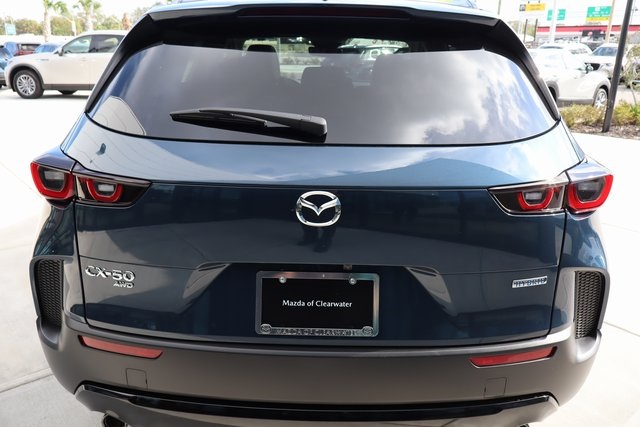 Ingot Blue Metallic 2026 Mazda CX-50 Hybrid Premium AWD CVT 2.5L 4-Cylinder Keyless Start, Blind Spot Monitor, Lane Departure Warning, Lane Keep Assist, LED Headlights, CX-50 Hybrid Premium, 4D Sport Utility, 2.5L 4-Cylinder, CVT, AWD, Ingot Blue Metallic, Blk Lth Leather, 4-Wheel Disc Brakes, ABS brakes, Active Cruise Control, Alloy wheels, AppLink/Apple CarPlay and Android Auto, Auto-dimming Rear-View mirror, Black Lug Nuts and Black Wheel Locks, Dual front impact airbags, Electronic Stability Control, Emergency communication system: MAZDA CONNECT, Exterior Parking Camera Rear, Front dual zone A/C, Front Splash Guards, Heated door mirrors, Heated front seats, Illuminated Door Sill Trim Plates, Illuminated entry, Knee airbag, Leather Seat Trim, Low tire pressure warning, Memory seat, Power driver seat, Power Liftgate, Power moonroof, Rain sensing wipers, Rear Splash Guards, Remote keyless entry, Steering wheel mounted audio controls, Traction control, Wheels: 17" x 7J Aluminum Alloy Black Metallic Finish.