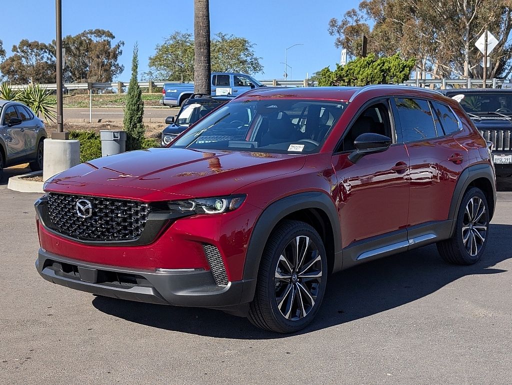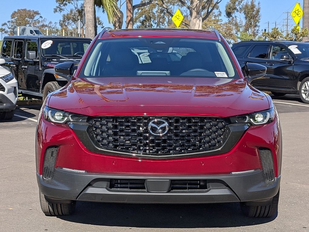 Hello Mazda of San Diego is proud to offer this attractive-looking 2026 Mazda CX-50 2.5 S in soul red crystal metallic, beautifully equipped with Accent Package, Cargo Package, Alloy wheels, AppLink/Apple CarPlay and Android Auto, Rain sensing wipers, 12 Speakers, 4-Wheel Disc Brakes, ABS brakes, Air Conditioning, AM/FM radio: SiriusXM, Auto High-beam Headlights, Auto-dimming Rear-View mirror, Automatic temperature control, Brake assist, Bumpers: body-color, Carpet Cargo Mat, Delay-off headlights, Driver door bin, Driver vanity mirror, Dual front impact airbags, Dual front side impact airbags, Electronic Stability Control, Emergency communication system: Mazda Connect, Exterior Parking Camera Rear, Front anti-roll bar, Front Bucket Seats, Front Center Armrest, Front dual zone A/C, Front reading lights, Front wheel independent suspension, Fully automatic headlights, Heated and Ventilated Front Seats with 3 Level Adjustment, Heated door mirrors, Heated front seats, Illuminated entry, Knee airbag, Leather Seat Trim, Leather Shift Knob, Leather steering wheel, Low tire pressure warning, Memory seat, Occupant sensing airbag, Outside temperature display, Overhead airbag, Overhead console, Panic alarm, Passenger door bin, Passenger vanity mirror, Power door mirrors, Power driver seat, Power Liftgate, Power moonroof, Power passenger seat, Power steering, Power windows, Radio data system, Radio: AM/FM/HD Bose 12-Speaker Audio Sound System, Rear seat center armrest, Rear window defroster, Rear window wiper, Remote keyless entry, Soul Red Crystal Metallic Paint Charge, Speed control, Speed-sensing steering, Split folding rear seat, Spoiler, Steering wheel mounted audio controls, Tachometer, Telescoping steering wheel, Tilt steering wheel, Traction control, Trip computer, Turn signal indicator mirrors, Variably intermittent wipers, Ventilated front seats, and Wheels: 20" x 8J Aluminum Alloy Black Metallic with Machining Cut. Alloy wheels, AppLink/Apple CarPlay and Android Auto, Rain sensing wipers.