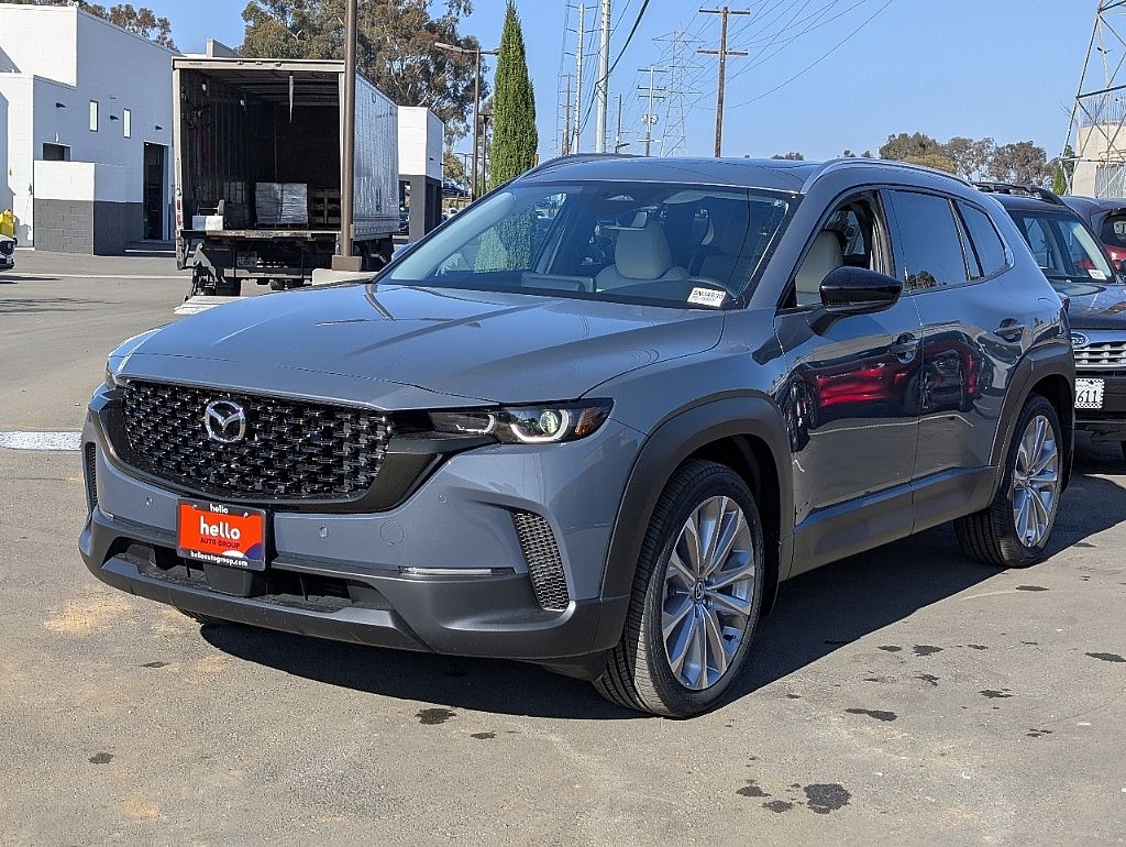 Hello Mazda of San Diego is pleased to offer this terrific 2026 Mazda CX-50 2.5 S in polymetal gray metallic, beautifully equipped with Weather Package, Alloy wheels, Memory seat, Power driver seat, Power Liftgate, Power moonroof, Rain sensing wipers, 12 Speakers, 4-Wheel Disc Brakes, ABS brakes, Air Conditioning, AM/FM radio: SiriusXM, AppLink/Apple CarPlay and Android Auto, Auto High-beam Headlights, Auto-dimming Rear-View mirror, Automatic temperature control, Brake assist, Bumpers: body-color, Delay-off headlights, Driver door bin, Driver vanity mirror, Dual front impact airbags, Dual front side impact airbags, Electronic Stability Control, Emergency communication system: Mazda Connect, Exterior Parking Camera Rear, Front and Rear Splash Guards, Front anti-roll bar, Front Bucket Seats, Front Center Armrest, Front dual zone A/C, Front reading lights, Front wheel independent suspension, Fully automatic headlights, Heated and Ventilated Front Seats with 3 Level Adjustment, Heated door mirrors, Heated front seats, Illuminated entry, Knee airbag, Leather Seat Trim, Leather Shift Knob, Leather steering wheel, Low tire pressure warning, Occupant sensing airbag, Outside temperature display, Overhead airbag, Overhead console, Panic alarm, Passenger door bin, Passenger vanity mirror, Polymetal Gray Metallic and White Interior, Power door mirrors, Power passenger seat, Power steering, Power windows, Radio data system, Radio: AM/FM/HD Bose 12-Speaker Audio Sound System, Rear seat center armrest, Rear window defroster, Rear window wiper, Remote keyless entry, Speed control, Speed-sensing steering, Split folding rear seat, Spoiler, Steering wheel mounted audio controls, Tachometer, Telescoping steering wheel, Tilt steering wheel, Traction control, Trailer Hitch with 4-Pin Harness, Trip computer, Turn signal indicator mirrors, Variably intermittent wipers, Ventilated front seats, and Wheels: 20" x 8J Aluminum Alloy Black Metallic with Machining Cut. Alloy wheels, Memory seat, Power driver seat, Power Liftgate, Power moonroof, Rain sensing wipers.