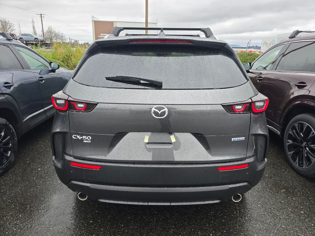 The 2026 Mazda CX-50 Hybrid Preferred AWD is a newly manufactured vehicle in transit to Dwayne Lane's Skagit Ford, Mazda, and Subaru. It features a 2.5L SKYACTIV-G 4-cylinder gas/electric hybrid engine and all-wheel drive. The vehicle is designed for efficiency and comfort, offering advanced safety features, a spacious interior, and a range of connectivity options. Please contact the dealer for updated pricing and more information.