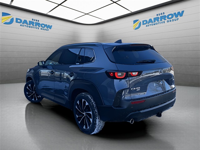 2026 Mazda CX-50 Hybrid Premium Plus polymetal gray metallic 2.5L 4-Cylinder AWD CVT 2.5L 4-Cylinder, 12 Speakers, 4-Wheel Disc Brakes, ABS brakes, Air Conditioning, Auto High-beam Headlights, Automatic temperature control, Brake assist, Bumpers: body-color, Delay-off headlights, Driver door bin, Driver vanity mirror, Dual front side impact airbags, Electronic Stability Control, Exterior Parking Camera Rear, Front anti-roll bar, Front Center Armrest, Front dual zone A/C, Front wheel independent suspension, Heated door mirrors, Heated front seats, Heated rear seats, Leather Seat Trim, Low tire pressure warning, Occupant sensing airbag, Panic alarm, Passenger vanity mirror, Polymetal Gray Metallic Paint Charge, Power Liftgate, Power moonroof, Power passenger seat, Power steering, Power windows, Radio: AM/FM/HD Bose 12-Speaker Audio Sound System, Rain sensing wipers, Rear seat center armrest, Remote keyless entry, Spoiler, Tilt steering wheel, Traction control, Turn signal indicator mirrors, Ventilation (not included in the description). Includes exclusive membership status in the Russ Darrow Rewards Program. Earn points for every dollar spent on goods and services at any Russ Darrow location.