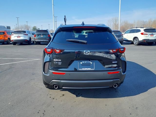 Jet Black 2026 Mazda CX-50 Hybrid Premium Plus AWD CVT 2.5L 4-Cylinder. 39/37 City/Highway MPG. Price includes $2500 Customer Cash. Exp. 03/31/2026.