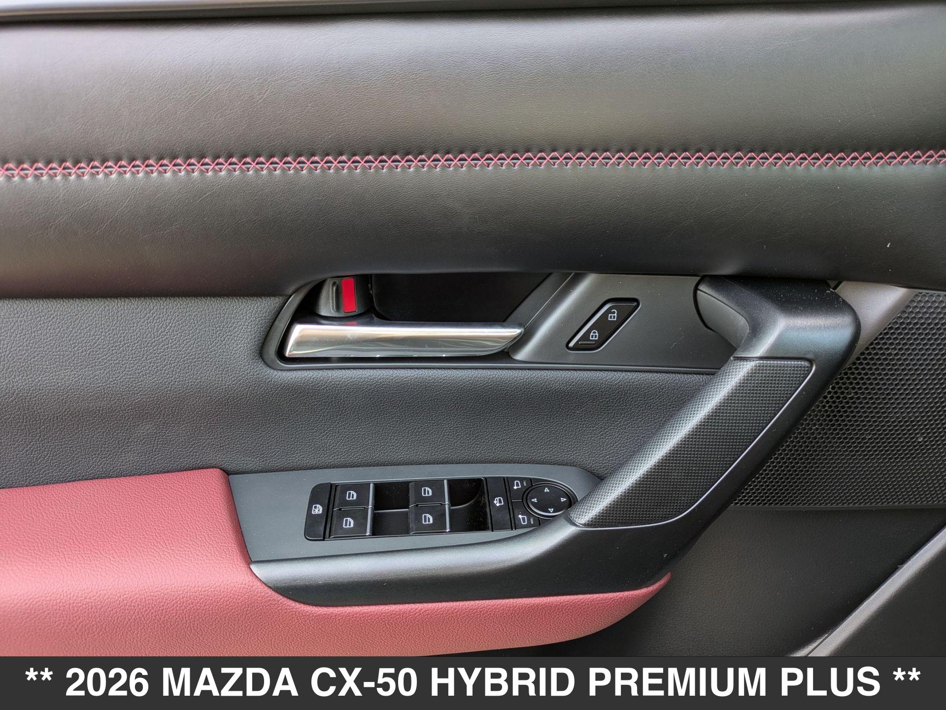 Come down to Galpin Mazda to see this beautiful New arrival. This 2026 Mazda CX-50 Hybrid H Hybrid Premium Plus is an excellent vehicle at an affordable price! This Mazda CX-50 Hybrid includes premium installed options such as weather package. Coming well equipped with options such as Hybrid, All Wheel Drive, Sunroof/Moonroof, Stability Control, WIFI Hotspot, Rear Cross Traffic Alert, Keyless Entry, Apple CarPlay, Android Auto and Heated Seats. With a polymetal gray metallic exterior, this vehicle will stand out from all the others. We are ready to answer any questions you may have. The Team at Galpin has outstanding customer service that will leave you completely satisfied. We know that you have high expectations, and we enjoy the challenge of meeting and exceeding them! Come by the dealership today to find the vehicle you have been searching for at the price you can afford!