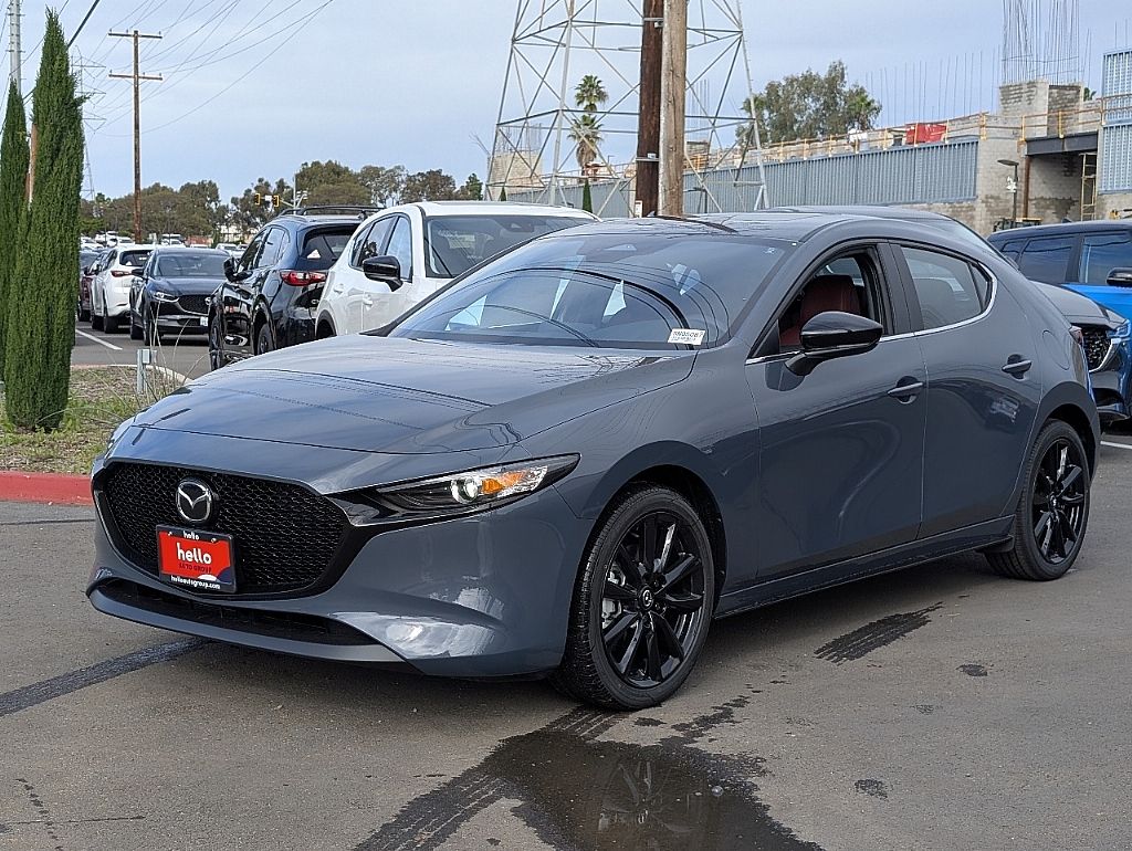 Hello Mazda of San Diego is excited to offer this beautiful-looking 2026 Mazda Mazda3 2.5 S Carbon Edition in Polymetal Gray Metallic, beautifully equipped with Memory seat, Power driver seat, Power moonroof, Rain sensing wipers, 4-Wheel Disc Brakes, 8 Speakers, ABS brakes, Air Conditioning, Alloy wheels, AM/FM radio, Auto High-beam Headlights, Automatic temperature control, Black Rear Bumper Guard, Brake assist, Bumpers: body-color, Cargo Tray, Compass, Delay-off headlights, Driver door bin, Driver vanity mirror, Dual front impact airbags, Dual front side impact airbags, Electronic Stability Control, Emergency communication system, Exterior Parking Camera Rear, Front anti-roll bar, Front Bucket Seats, Front Center Armrest, Front dual zone A/C, Front reading lights, Front wheel independent suspension, Fully automatic headlights, Heated door mirrors, Heated Front Bucket Seats, Heated front seats, High Wall All-Weather Floor Mats, Illuminated entry, Knee airbag, Leather Seat Trim, Leather Shift Knob, Leather steering wheel, Low tire pressure warning, MAZDA CONNECT Infotainment System, Occupant sensing airbag, Outside temperature display, Overhead airbag, Overhead console, Panic alarm, Passenger door bin, Passenger vanity mirror, Power door mirrors, Power steering, Power windows, Radio data system, Radio: AM/FM/HD Audio System, Rear seat center armrest, Rear side impact airbag, Rear window defroster, Rear window wiper, Remote keyless entry, Speed control, Speed-sensing steering, Split folding rear seat, Spoiler, Steering wheel mounted audio controls, Tachometer, Telescoping steering wheel, Tilt steering wheel, Traction control, Trip computer, Turn signal indicator mirrors, Variably intermittent wipers, and Wheels: 18" x 7J Aluminum Alloy. Memory seat, Power driver seat, Power moonroof, Rain sensing wipers.