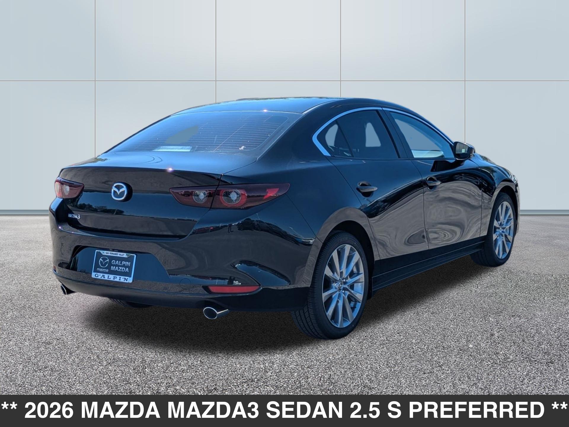 Come down to Galpin Mazda to see this beautiful New arrival. This 2026 Mazda Mazda3 Sedan 2.5 S Preferred is an excellent vehicle at an affordable price! Coming well equipped with options such as Sunroof/Moonroof, Stability Control, WIFI Hotspot, Rear Cross Traffic Alert, Keyless Entry, Apple CarPlay, Android Auto, Heated Seats, Rain Sensing Front Wipers and Dual Climate Control. With a Jet Black Mica exterior, this vehicle will stand out from all the others. We are ready to answer any questions you may have. The Team at Galpin has outstanding customer service that will leave you completely satisfied. We know that you have high expectations, and we enjoy the challenge of meeting and exceeding them! Come by the dealership today to find the vehicle you have been searching for at the price you can afford!
