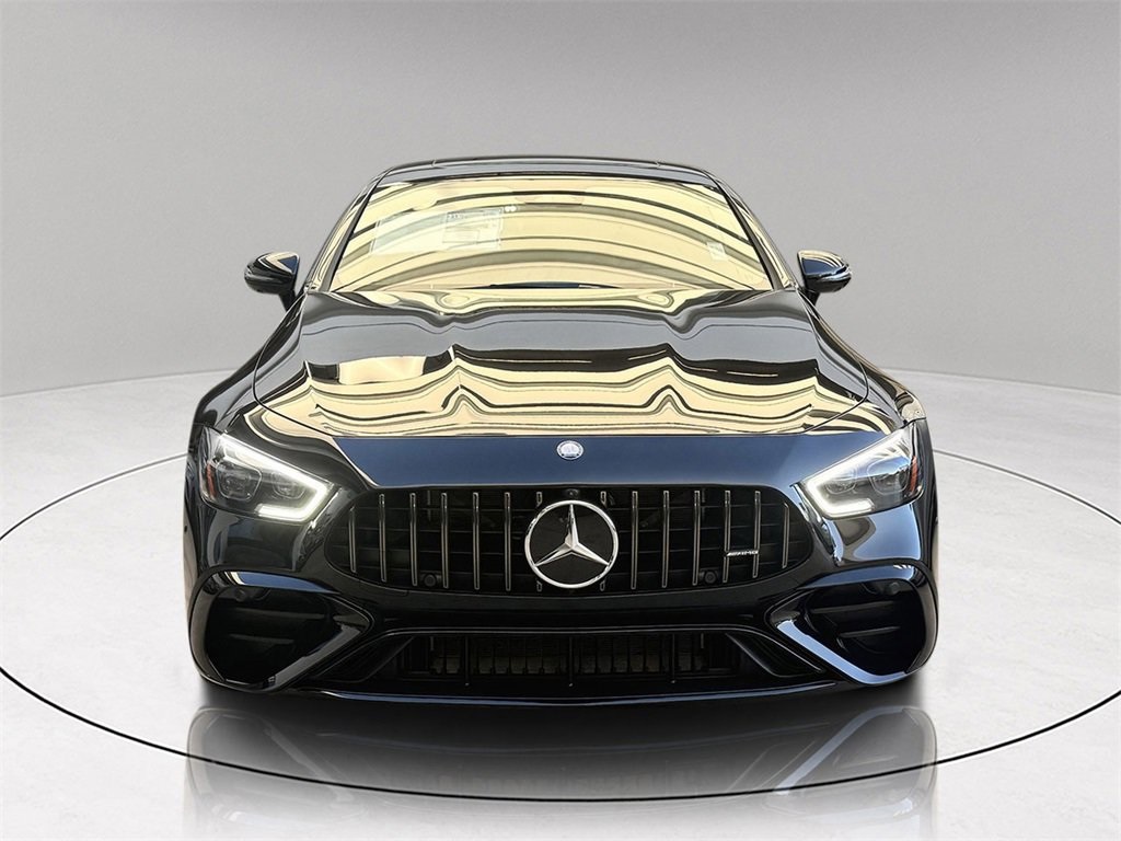 Obsidian Black 2026 Mercedes-Benz AMG® GT 43 4MATIC® 4D Hatchback 4MATIC® 9-Speed Automatic I6. Burmester® is a registered trademark of Burmester Audiosysteme GmbH, Berlin, Germany. Bluetooth® is a registered trademark of Bluetooth SIG, Inc. Harman/kardon® is a registered trademark of Harman International Industries, Incorporated. This vehicle's options include Burmester Surround Sound System, Apple CarPlay/Android Auto, Navigation System, Premium audio system, Rain sensing wipers, Sunroof / Moonroof, WiFi Hotspot, and Wireless phone charging.