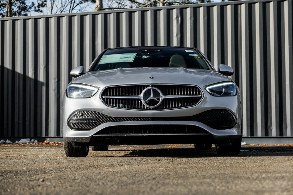 Cirrus Silver 2026 Mercedes-Benz C-Class C 300 4MATIC 4MATIC 9-Speed Automatic 2.0L I4 Turbocharged Cirrus Silver Metallic, Macchiato Beige MB-Tex Interior, Driver Assistance Package, Exclusive Line Interior, Heated & Ventilated Front Seats, Panorama Sunroof, Surround View Camera, Heated Steering Wheel, Winter Package, Illuminated Door Sills, MBUX Navigation + Live Traffic + Apple CarPlay / Android Auto, Hands-Free Access, 18 Multispoke Wheels + Extended Mobility Tires, 4MATIC. Recent Arrival! 24/33 City/Highway MPG. Burmester is a registered trademark of Burmester Audio System GmbH, Berlin, Germany.