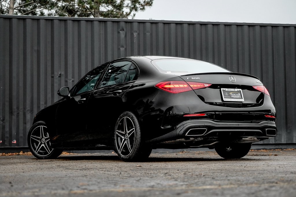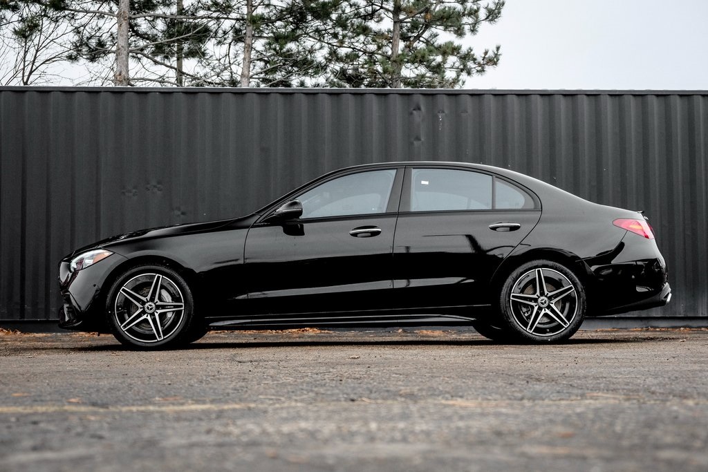 Black 2026 Mercedes-Benz C-Class C 300 4MATIC® 4MATIC® 9-Speed Automatic 2.0L I4 Turbocharged 4MATIC®, Active Distance Assist DISTRONIC®, AMG® Body Styling, AMG® Line, AMG® Line Exterior, Apple CarPlay®/Android Auto®, Heated Steering Wheel, High-Gloss Black Elements, MB-Tex Dashboard, Night Package, PANORAMA SUNROOF, Perforated Brake Discs, Power Heated Front Seats w/Memory, Sport Suspension w/Sport Steering System, Star Grille, Wheels: 18 AMG® 5-Spoke w/Black Accents. 24/33 City/Highway MPG. Burmester® is a registered trademark of Burmester® Audio System GmbH, Berlin, Germany.