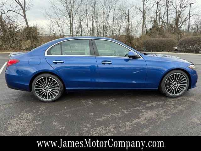 Elevate your daily drive with this stunning Starling Blue Metallic Mercedes-Benz C 300 4MATIC, a perfect fusion of performance, technology, and unmistakable Mercedes-Benz design. Powered by a 2.0L I4 Turbocharged engine paired with a smooth 9-Speed Automatic transmission and confident 4MATIC all-wheel drive, this C-Class delivers refined power and impressive efficiency at 24/33 City/Highway MPG. The AMG Line and AMG Line Exterior enhance its athletic presence with bold AMG body styling, a distinctive Star Grille, perforated brake discs, and striking 19" AMG Multispoke wheels with Black Accents. A Sport Suspension with Sport Steering System sharpens handling, creating a dynamic yet composed ride that's equally at home on winding roads or city streets. Inside, innovation meets modern luxury. The dramatic 11.9" Center Touchscreen Display anchors the advanced MBUX infotainment system, offering seamless Apple CarPlay and Android Auto integration, SiriusXM Satellite Radio, and a premium FrontBass 5-Speaker Audio System. The MB-Tex dashboard and refined materials create a sophisticated atmosphere, while the Panorama Sunroof fills the cabin with natural light. Comfort is thoughtfully designed with Power Heated Front Seats with Memory, a Heated Steering Wheel, dual-zone automatic climate control, and a power driver seat. Features like the HomeLink garage door transmitter, remote keyless entry, and rain-sensing wipers add everyday convenience. Safety and security are paramount, with GUARD 360, Electronic Stability Control, a rear exterior parking camera, Rear Seat Side Airbags, Child-Seat-Sensing Airbag technology, and a comprehensive airbag system providing confidence for you and your passengers. For 65 years, James Motor Company has proudly delivered an unparalleled luxury experience to the Lexington, Kentucky area as an authorized Mercedes-Benz dealer. With a legacy of exceptional service and dedication to excellence, they are committed to making your journey extraordinary. This recent arrival blends sporty AMG styling, advanced technology, and timeless luxury—a sedan designed to exceed expectations at every turn.