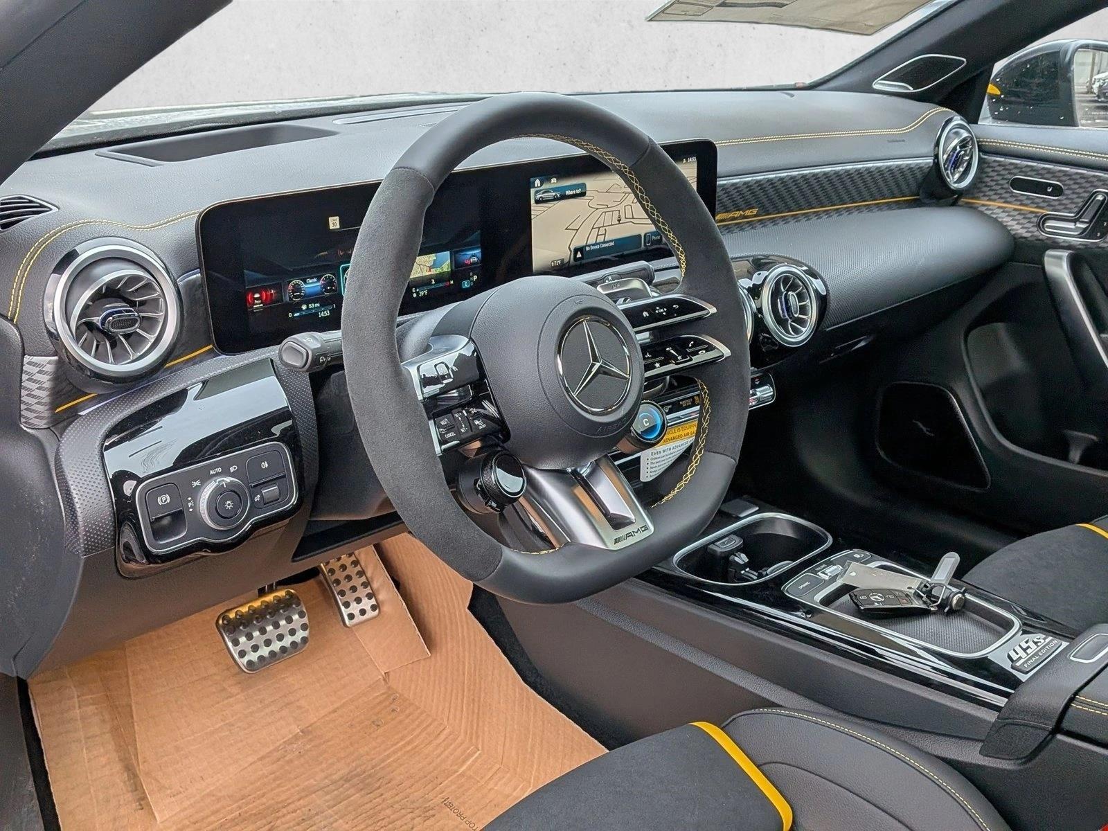 Pinnacle Trim, Manufaktur Mountain Grey Magno, AMG Performance Seat Package, AMG Aerodynamics Plus Package, Driver Assistance Package, AMG Night Package Plus, Panoramic Roof, Navigation System, Lane Keeping Assist, Keyless Start, Rear Spoiler, Heads-Up Display, CLA 45 S Final Edition.