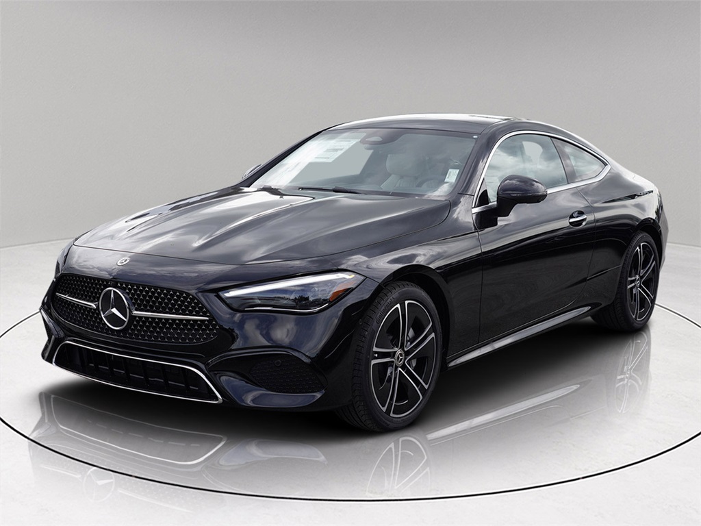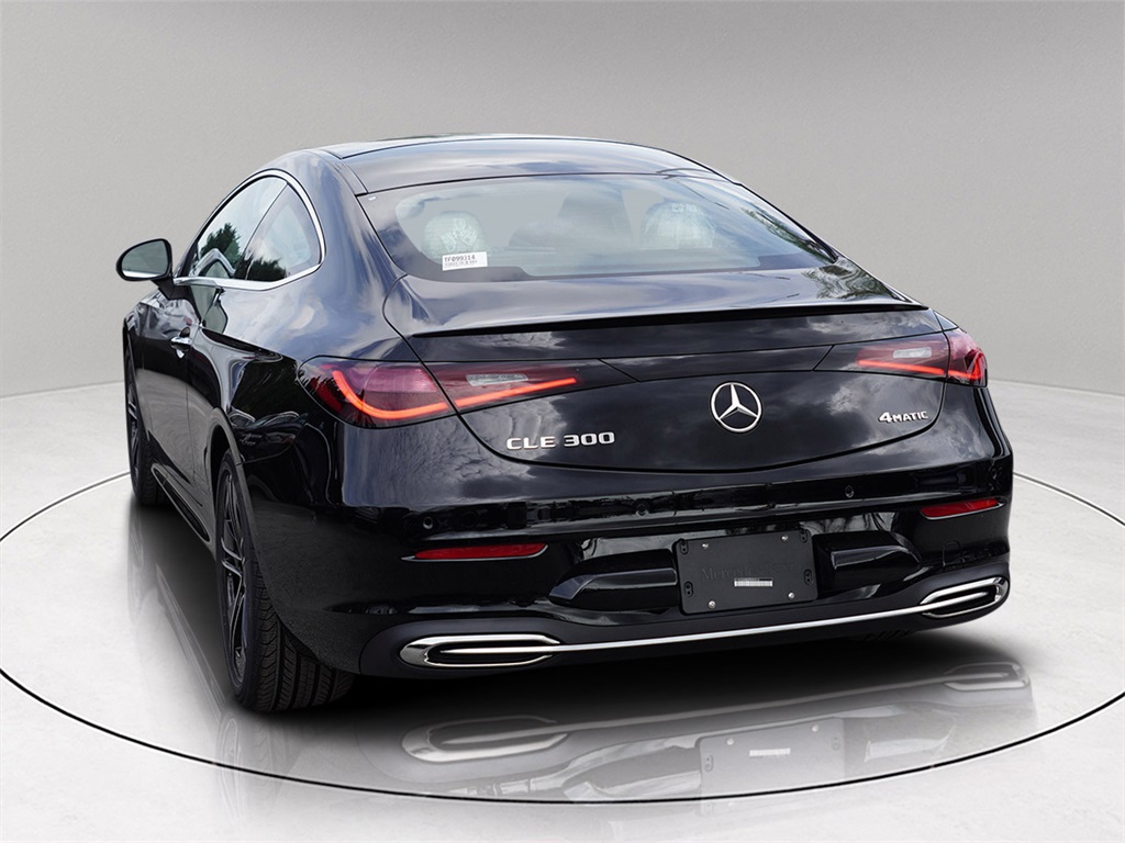 Black 2026 Mercedes-Benz CLE CLE 300 4MATIC® 2D Coupe 4MATIC® 9-Speed Automatic I4 I4.24/33 City/Highway MPGBurmester®: Burmester is a registered trademark of Burmester Audiosysteme GmbH, Berlin, Germany Bluetooth®: Bluetooth is a registered trademark of Bluetooth SIG, Inc. Harman/kardon®: harman/kardon and Logic 7 are registered trademarks of Harman International Industries, Incorporated This vehicle's options includes: I4, 11.9 Center Touchscreen Display, 17 Speakers, 3 USB C-Ports, 4-Wheel Disc Brakes, ABS brakes, Air Conditioning, Alloy wheels, AM/FM radio: SiriusXM w/360L, Apple CarPlay/Android Auto®, Auto High-beam Headlights, Auto tilt-away steering wheel, Auto-dimming door mirrors, Auto-dimming Rear-View mirror, Automatic temperature control, Brake assist, Bumpers: body-color, Compass, Delay-off headlights, Driver door bin, Driver vanity mirror, Dual front impact airbags, Dual front side impact airbags, Electronic Stability Control, Emergency communication system: Mercedes-Benz Emergency Call Service, Exterior Parking Camera Rear, Four wheel independent suspension, Front anti-roll bar, Front Bucket Seats, Front Center Armrest, Front dual zone A/C, Front reading lights, Fully automatic headlights, Garage door transmitter: HomeLink, HD Radio, Head restraints memory, Heated door mirrors, Heated Front Seats, Heated front seats, Illuminated entry, Knee airbag, Leather steering wheel, Low tire pressure warning, MB Navigation, MB-Tex Seat Trim, Memory seat, Navigation system: MBUX, Occupant sensing airbag, Outside temperature display, Overhead airbag, Overhead console, Panic alarm, Passenger door bin, Passenger vanity mirror, Power adjustable front head restraints, Power door mirrors, Power driver seat, Power moonroof: Panorama, Power passenger seat, Power steering, Power windows, Radio data system, Radio: 3rd Generation MBUX Multimedia System, Rain sensing wipers, Rear anti-roll bar, Rear fog lights, Rear window defroster, Remote keyless entry, Security system, SiriusXM Satellite Radio, Speed control, Speed-sensing steering, Split folding rear seat, Spoiler, Steering wheel memory, Steering wheel mounted audio controls, Steering Wheel Shift Paddles, Tachometer, Telescoping steering wheel, Tilt steering wheel, Traction control, Trip computer, Turn signal indicator mirrors, Variably intermittent wipers.