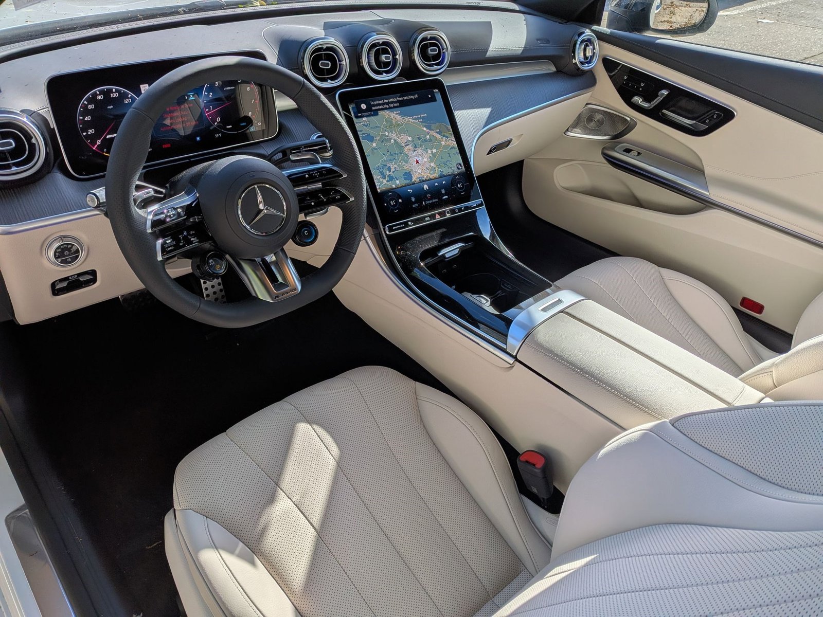 Manufaktur Moonlight White Metallic, Macchiato Beige/Black; Leather Upholstery, AMG Night Package, Panoramic Roof, Active Distance Assist Distronic, Leather Seats, Navigation System, Ventilated Front Seats, Heated Steering Wheel, Keyless Start, Rear Spoiler, Cooled Front Seat(S).