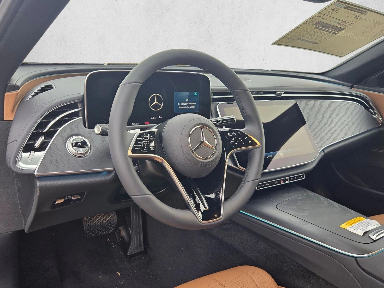 The 2026 Mercedes-Benz E 350 RWD Sedan is a new vehicle in transit at Mercedes-Benz of Houston Greenway. It features a mild hybrid electric powertrain, premium Burmester audio, and a host of driver assistance features. The interior is designed for comfort and convenience, with ventilated front seats, a leatherette MB-Tex upholstery, and advanced technology for connectivity and safety. The exterior is finished in Graphite Gray, complemented by the Tonka Brown/Black interior. This E-Class model offers impressive performance, advanced safety features, and a refined driving experience.