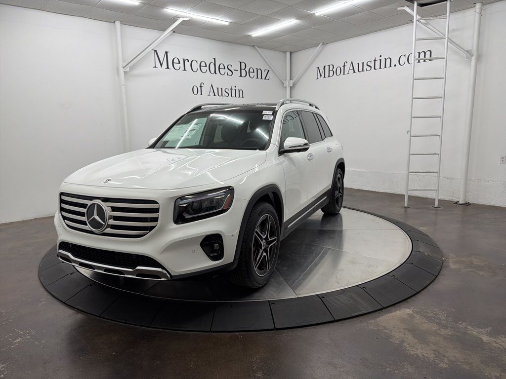 Polar White 2026 Mercedes-Benz GLB 250. This vehicle comes with the following features and options: AMG Line Lite, Exclusive Package, Exclusive Trim Package, Keyless Go Comfort Package, Parktronic Parking Package with Active Park Assist, Sun & Sound Package, Panorama Roof, Advanced Sound System, Music Streaming, and Keyless Entry. The vehicle features a turbocharged 2.0L I4 engine, front wheel drive, and a comfortable interior with MB-Tex upholstery. Complimentary Mercedes-Benz Roadside Assistance and a range of convenience features make this SUV a practical and stylish choice.