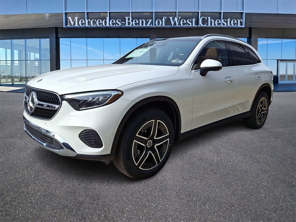 The 2026 Mercedes-Benz GLC 300 4MATIC SUV is a new model located at Mercedes-Benz of West Chester. It features a Polar White exterior and Sienna Brown interior, offering a comfortable and sporty ride with advanced features. The vehicle is equipped with a 9-speed automatic transmission, all-wheel drive, and a mild hybrid electric powertrain. It provides a unique and stunning interior, advanced safety and security features, and a premium audio system. The GLC 300 is designed for both comfort and performance, making it a pleasure to drive and own.