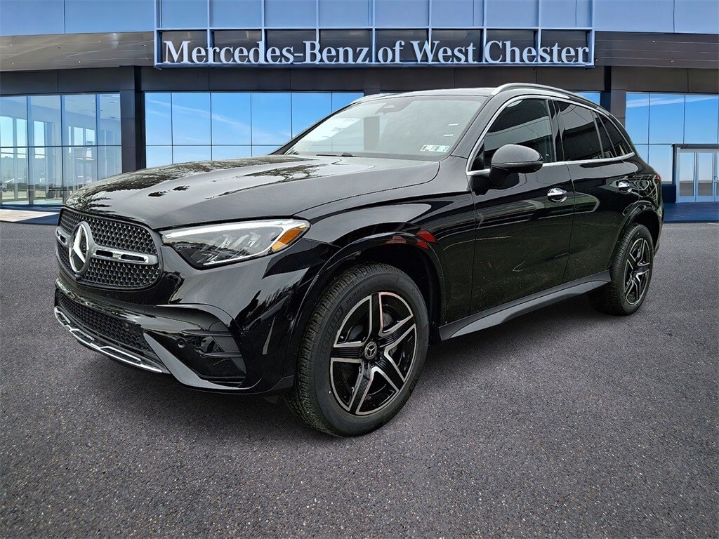 The 2026 Mercedes-Benz GLC 300 4MATIC SUV is a new model located at Mercedes-Benz of West Chester. It features a mild hybrid electric vehicle powertrain, premium audio system, and a unique interior with AMG Black trim. The vehicle offers a comfortable ride, advanced safety features, and a host of technology options for convenience and entertainment. The GLC 300 combines luxury, performance, and efficiency in a stylish SUV package.