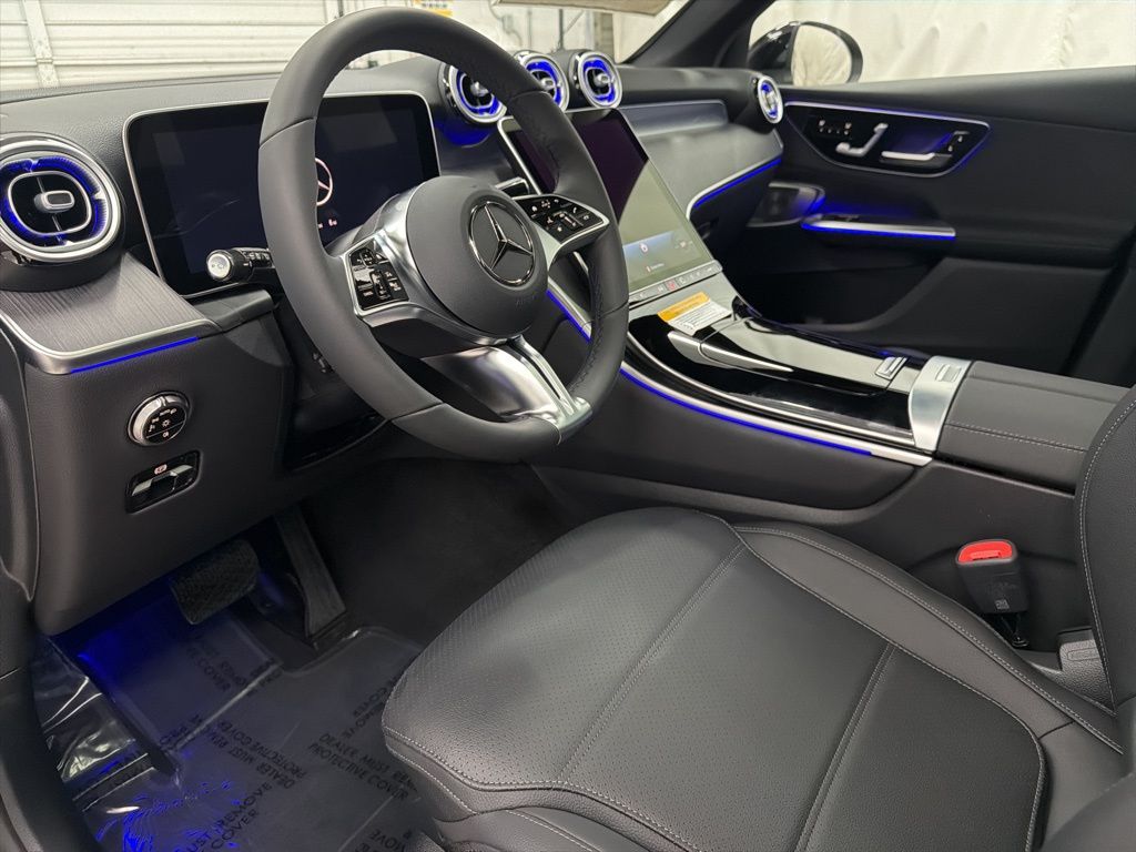 Black 2026 Mercedes-Benz GLC 300. This vehicle comes with the following features and options: AMG Lite Plus, 11.9 Center Touchscreen Display, 16-Way Power Front Seats, 3 USB C-Ports, 4-Wheel Disc Brakes, 8 Speakers, ABS brakes, Active Distance Assist DISTRONIC, Air Conditioning, Alloy wheels, Apple CarPlay/Android Auto, Auto High-beam Headlights, Auto tilt-away steering wheel, Auto-dimming Rear-View mirror, Automatic temperature control, Black Headliner, Brake assist, Child-Seat-Sensing Airbag, Compass, Delay-off headlights, Driver door bin, Driver vanity mirror, Dual front impact airbags, Dual front side impact airbags, Electronic Stability Control, Emergency communication system: eCall Emergency System, Enhanced Ambient Lighting, Exterior Parking Camera Rear, Four wheel independent suspension, Front anti-roll bar, Front Bucket Seats, Front Center Armrest, Front dual zone A/C, Front reading lights, Fully automatic headlights, Garage door transmitter: HomeLink, Genuine wood dashboard insert, GUARD 360, HD Radio, Head restraints memory, Heated door mirrors, Heated Front Bucket Seats, Heated front seats, Illuminated Door Sills, Illuminated entry, Inductive Wireless Charging, Knee airbag, Leather steering wheel, Low tire pressure warning, MB Navigation, MB-Tex Upholstery, MBUX Entertainment Plus, Memory seat, Occupant sensing airbag, Outside temperature display, Overhead airbag, Overhead console, Panic alarm, Passenger door bin, Passenger vanity mirror, Piano Black Lacquer Center Console, Power adjustable front head restraints, Power door mirrors, Power driver seat, Power Liftgate, Power passenger seat, Power steering, Power windows.