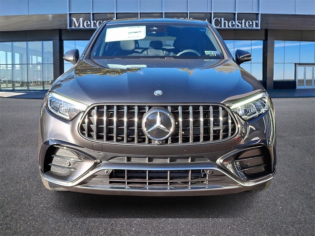 The 2026 Mercedes-Benz AMG GLC 43 4MATIC SUV is a new model located at Mercedes-Benz of West Chester. It features a Graphite Grey Metallic exterior and an AMG Black interior. The vehicle is equipped with a 2.0L I-4 mild hybrid engine, all-wheel drive, and a 9-speed automatic transmission. It offers a comfortable and sporty ride with advanced features and a unique interior design. The GLC 43 is known for its excellent fuel economy, premium audio system, and a host of driver assistance technologies.