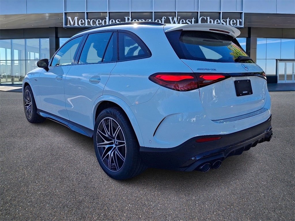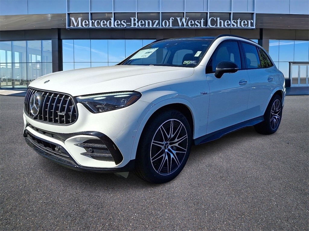 The 2026 Mercedes-Benz AMG GLC 43 4MATIC SUV is a new model located at Mercedes-Benz of West Chester. It features a Polar White exterior and an AMG Black interior. The vehicle is equipped with a 2.0L I-4 mild hybrid engine and all-wheel drive. It offers a comfortable and sporty ride with advanced features and a unique interior design. The GLC 43 is known for its reliability, advanced technology, and premium driving experience.