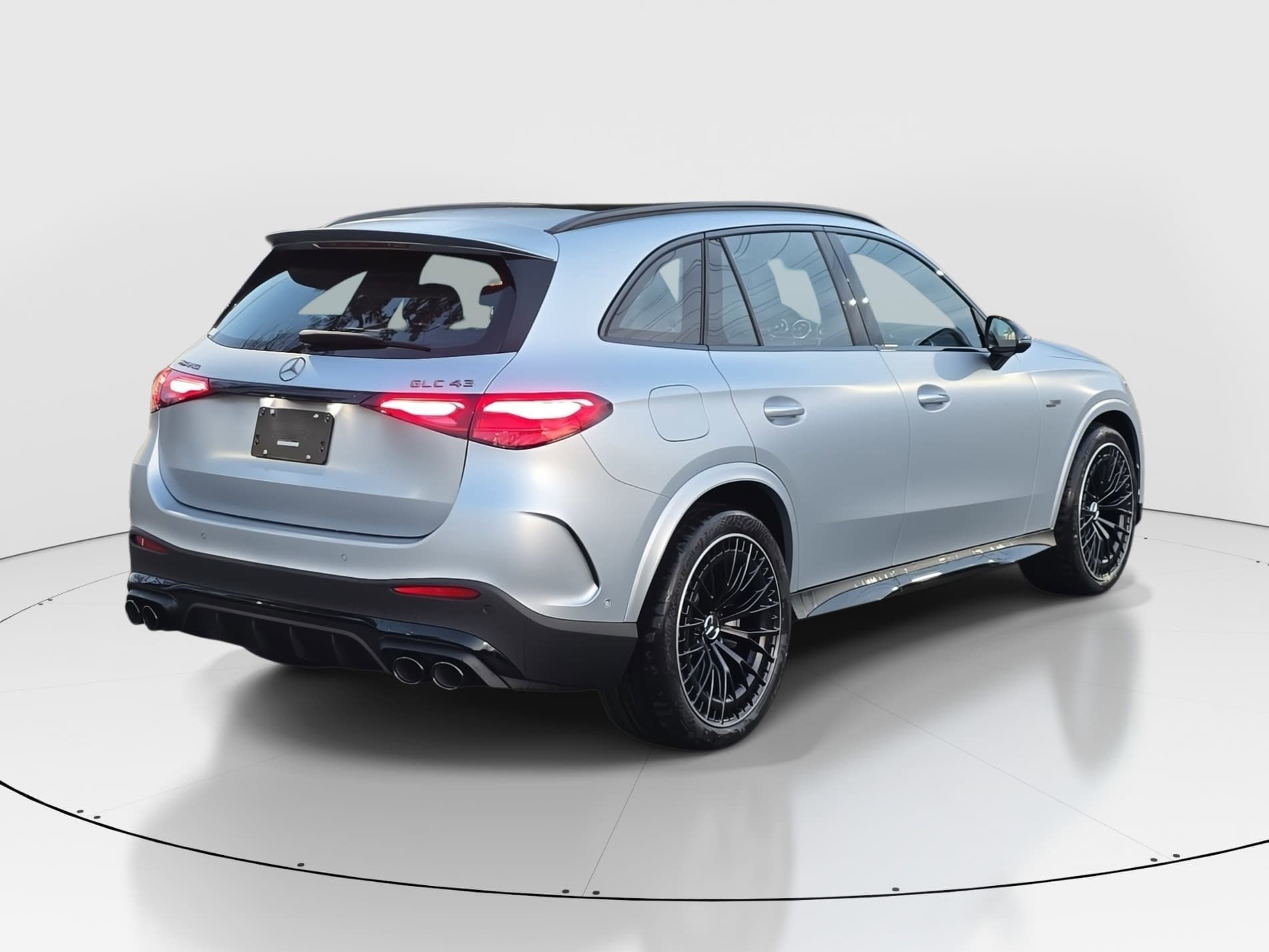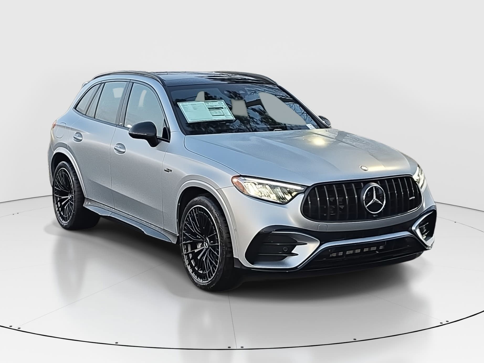 Burmester is a registered trademark of Burmester Audiosysteme GmbH, Berlin, Germany. Silver 2026 Mercedes-Benz GLC GLC 43 AMG® 4MATIC® 4MATIC® I4 9-Speed Automatic. Premium Options & Packages include Apple CarPlay®, Android Auto®, AMG Night Package, Driver Assistance Package, Power moonroof, PRE-SAFE® Brake with Pedestrian Recognition, Route-Based Speed Adaptation, and 11.9" Center Touchscreen Display.