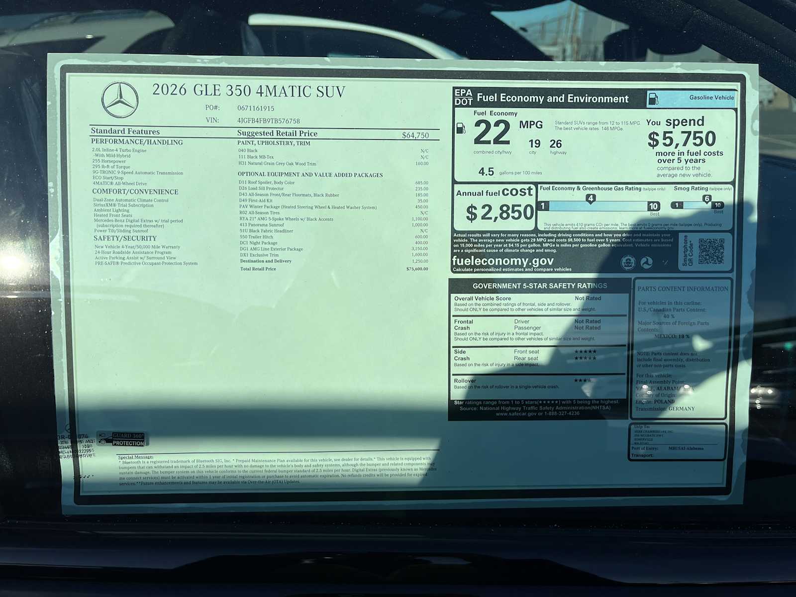Heated Seats, Navigation, Sunroof, Onboard Communications System, iPod/MP3 Input, Back-Up Camera, Power Liftgate, Full-Time 4MATIC All-Wheel, Trailer Hitch, Winter Package, Exclusive Trim, AMG Line Exterior, Night Package, Roof Spoiler, Panorama Power Tilt/Sliding Sunroof, Wheels: 21 AMG Twin 5-Spoke with Black Accents. Black exterior and Black interior. CLICK NOW! Mercedes-Benz GLE 350 with Black exterior and Black interior features a 4 Cylinder Engine with 255 HP at 5800 RPM. We make every effort to present information that is accurate. However, it is based on data provided by the manufacturer & other sources and exact configuration, color, specifications, payment, accessories and are not guaranteed. Picture may not represent actual vehicle. Price varies based on Trim Levels and Options. See Dealer for in-stock inventory & actual selling price. All prices plus tax, title & registration fees. Dealer doc fee of $499 not included in price. All inventory is subject to prior sale and prices are subject to change without notice. Under no circumstances will we be liable for any inaccuracies, claims or losses of any nature. To ensure your complete satisfaction, please verify accuracy prior to purchase. Fuel economy figures shown are provided from EPA mileage estimates and may not be comparable across different model years. Your actual mileage will vary, depending on specific options selected, how you maintain the vehicle and your personal driving habits. Certain offers may not be combined with others. Please verify any information in question with the dealership.