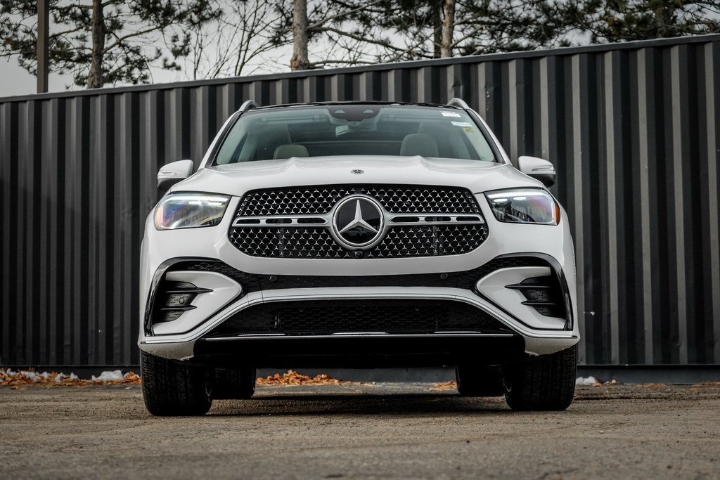 Polar White 2026 Mercedes-Benz GLE GLE 450 4MATIC 4MATIC 9-Speed Automatic 3.0L I6 Turbo Driver Assistance Package, Exclusive Trim, Panorama Sunroof, Brown Linden Wood Trim, MBUX Navigation with Augmented Video, Winter Package, 21 AMG Multispoke Wheels. Recent Arrival! Burmester is a registered trademark of Burmester Audio System GmbH, Berlin, Germany.