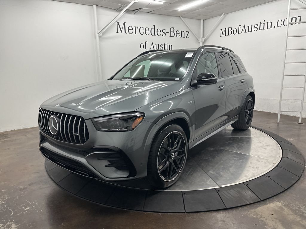 Selenite Grey Metallic 2026 Mercedes-Benz GLE 53 AMG 4MATIC+ SUV. This vehicle comes with the following features and options: AMG Night Package, Driver Assistance Package, Winter Package, Navigation system, AWD, and more.