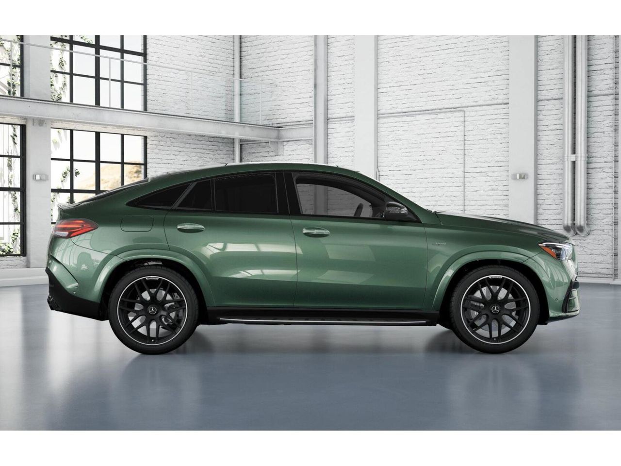 Green 2026 Mercedes-Benz GLE GLE 53 AMG 4MATIC 4D Coupe 4MATIC 9-Speed Automatic 3.0L I6 Turbo. Burmester is a registered trademark of Burmester Audiosysteme GmbH, Berlin, Germany. Bluetooth is a registered trademark of Bluetooth SIG, Inc. Harman/kardon and Logic 7 are registered trademarks of Harman International Industries, Incorporated. This vehicle's options include 13 Speakers, 21 AMG Twin 5-Spoke Wheels, Adaptive suspension, Alloy wheels, Apple CarPlay/Android Auto, Auto High-beam Headlights, Auto tilt-away steering wheel, Auto-dimming door mirrors, Auto-dimming Rear-View mirror, Auto-leveling suspension, Automatic temperature control, Brake assist, Brushed Aluminum Trim, Child-Seat-Sensing Airbag, Compass, Delay-off headlights, Driver door bin, Driver vanity mirror, Dual front impact airbags, Dual front side impact airbags, Electronic Stability Control, Emergency communication system: eCall Emergency System, Exterior Parking Camera Rear, Four wheel independent suspension, Front anti-roll bar, Front Bucket Seats, Front Center Armrest, Front dual zone A/C, Front reading lights, Fully automatic headlights, Garage door transmitter: HomeLink, Heated door mirrors, Heated front seats, Htd & Vent Power Front Seats w/Driver Memory, Illuminated entry, Knee airbag, Leather steering wheel, Low tire pressure warning, Memory seat, Nappa Leather Dashboard & Door Panels, Nappa Leather Seat Trim, Navigation system: MBUX, Occupant sensing airbag, Outside temperature display, Overhead airbag, Panic alarm, Passenger door bin, Passenger vanity mirror, Power adjustable front head restraints, Power door mirrors, Power driver seat, Power Liftgate, Power moonroof: Panorama, Power passenger seat, Power steering, Power windows.