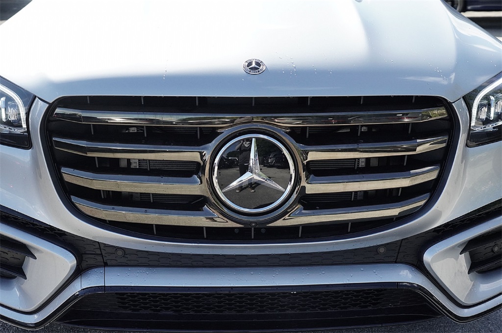Silver 2026 Mercedes-Benz GLS GLS 450 4MATIC® 4D Sport Utility 4MATIC® 9-Speed Automatic 3.0L I6. Burmester® is a registered trademark of Burmester Audiosysteme GmbH, Berlin, Germany. Bluetooth® is a registered trademark of Bluetooth SIG, Inc. Harman/kardon® is a registered trademark of Harman International Industries, Incorporated. This vehicle's options include split-bench 3rd row seats, adaptive suspension, Apple CarPlay/Android Auto, navigation system, premium audio system, rain sensing wipers, rear air conditioning, sunroof, and more.