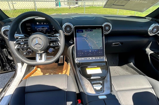 The 2026 Mercedes-Benz SL 55 AMG® 4MATIC® is a luxury sport convertible featuring a 4.0L V8 Biturbo engine and a 9-speed automatic transmission. With a striking black exterior and a refined black interior, this vehicle offers a premium driving experience. Enjoy advanced technology, comfort, and performance with features like the MBUX Infotainment & Navigation System, Burmester Surround Sound System, and Nappa Leather Upholstery.
