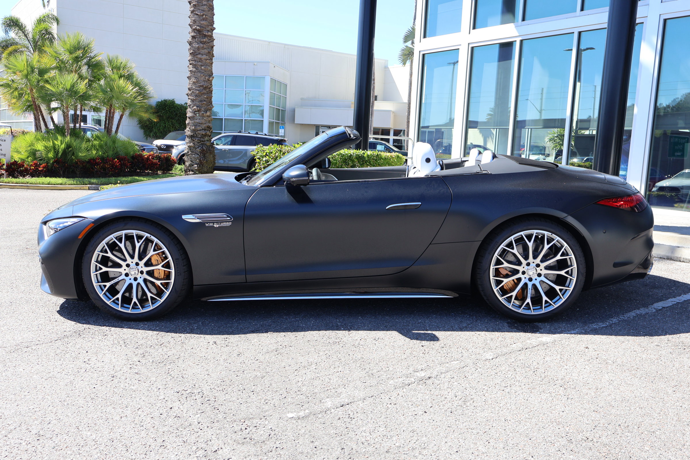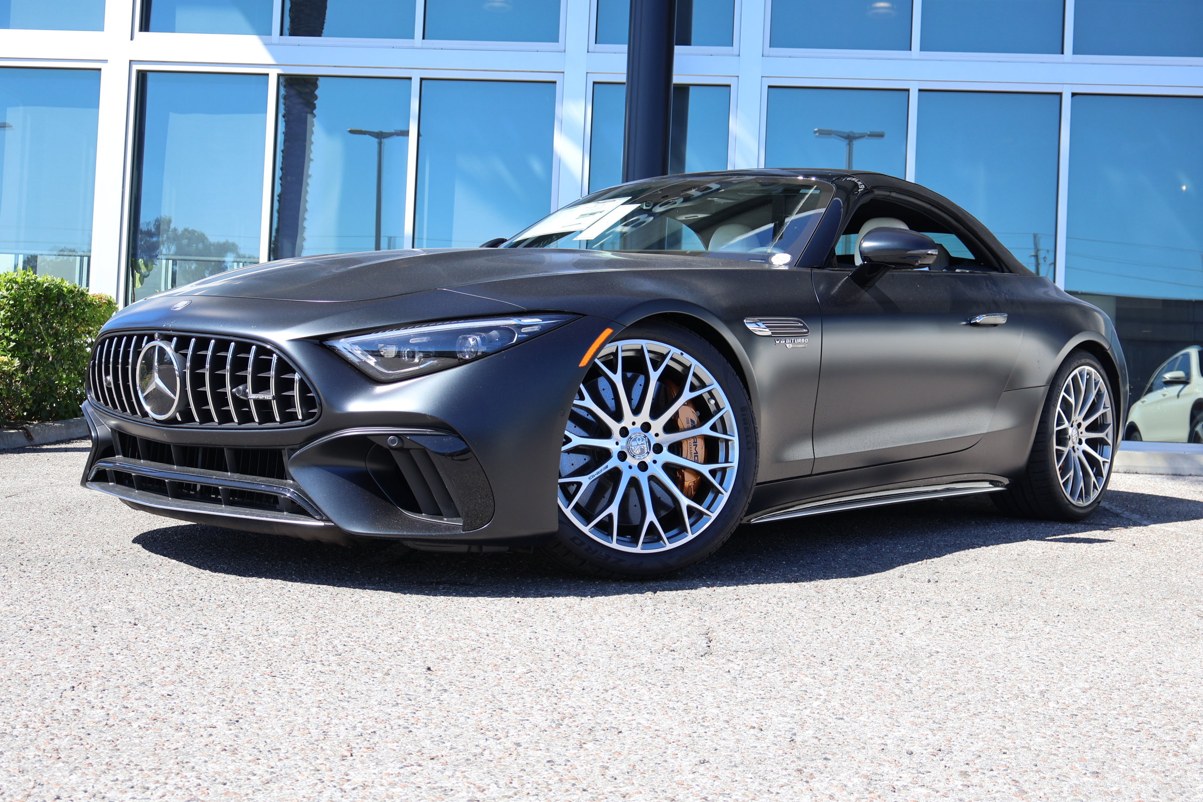 The 2026 Mercedes-Benz SL AMG 63 S E Performance is a luxury sport convertible featuring a Twin Turbo Gas/Electric V-8 engine with all-wheel drive and a 9-speed automatic transmission. This new model offers a sophisticated driving experience with advanced technology, premium materials, and a host of comfort and safety features. The vehicle is finished in Night Black with a Crystal White interior and is designed for both performance and everyday luxury.