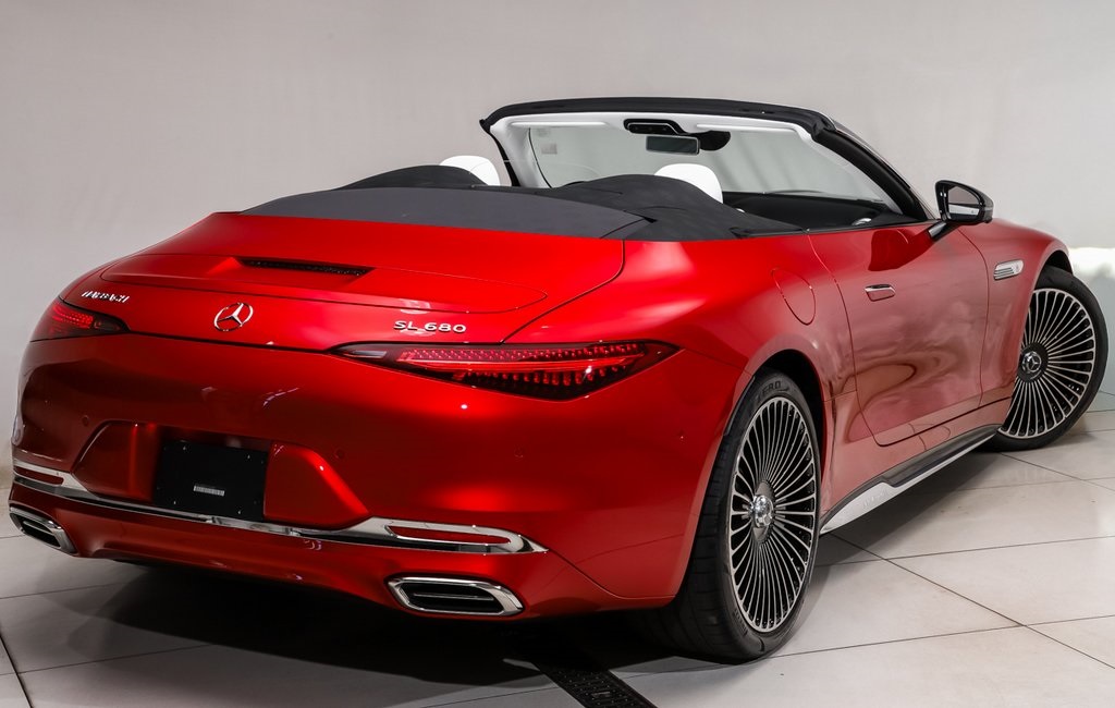 The 2026 Mercedes-Benz SL Maybach 680 is a luxury sport convertible with a powerful 4.0L V8 Bi-Turbo engine and all-wheel drive. This new vehicle features a MANUFAKTUR garnet red metallic exterior and MANUFAKTUR Exclusive nappa leather upholstery crystal white interior. The SL Maybach 680 offers advanced technology, premium comfort, and a dynamic driving experience.