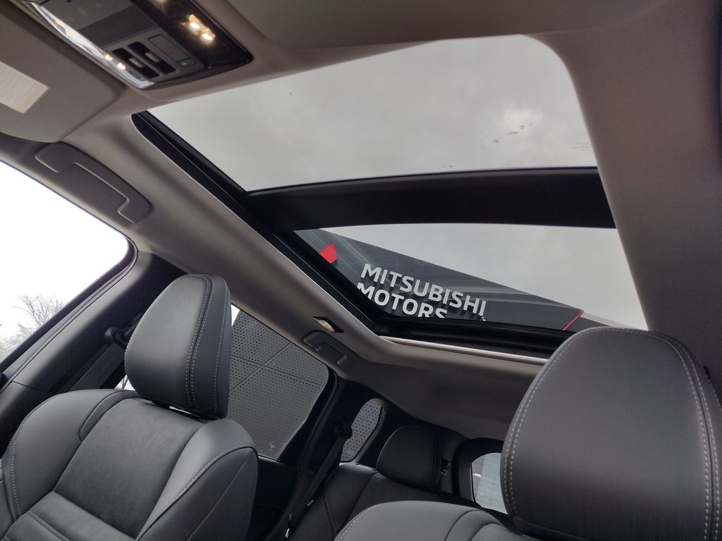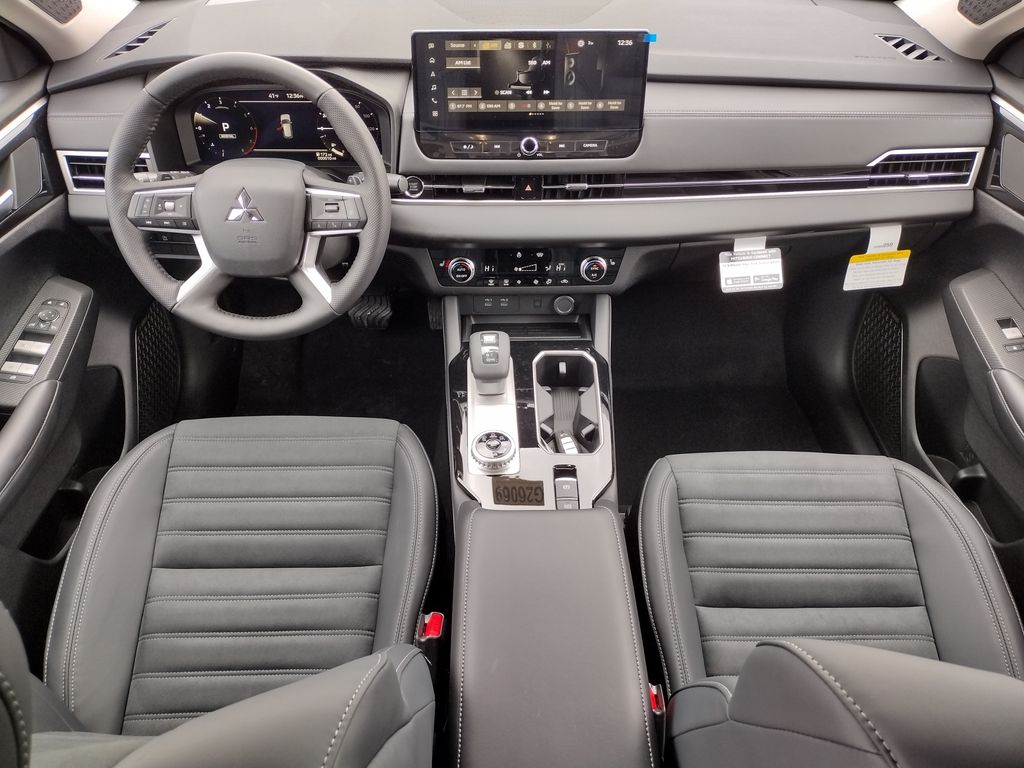 The 2026 Mitsubishi Outlander SE 1.5T S-AWC is a three-row SUV finished in Cosmic Blue Metallic with a black interior and powered by a 1.5-liter direct-injection turbocharged 4-cylinder engine paired with an 8-speed continuously variable transmission. Mitsubishis Super All-Wheel Control (S-AWC) system provides enhanced traction and stability in a variety of road conditions. Exterior features include LED headlights and daytime running lights, LED fog lights, heated power-folding side mirrors, a hands-free power liftgate with adjustable height, and 20-inch two-tone alloy wheels. Inside, the cabin provides seating for up to seven passengers with synthetic leather suede seating surfaces, heated front seats, and a heated leather-wrapped steering wheel. The interior also includes dual-zone automatic climate control and a power panoramic sunroof as part of the SE Tech Package. Technology highlights include a 12.3-inch Smartphone-Link Display Audio system with built-in navigation, wireless Apple CarPlay and Android Auto, wireless smartphone charging, a multi-view camera system, Yamaha premium audio, and a 12.3-inch display of Yamaha audio. The vehicle also includes several accessories such as Mitsubishi door ground illumination.