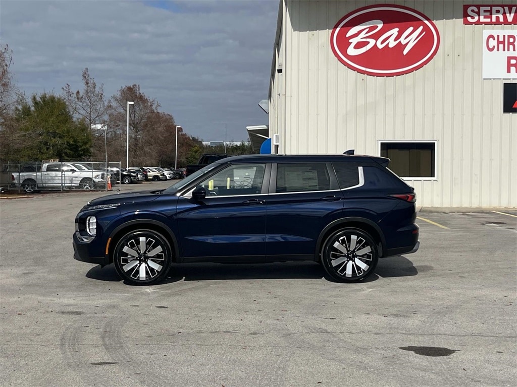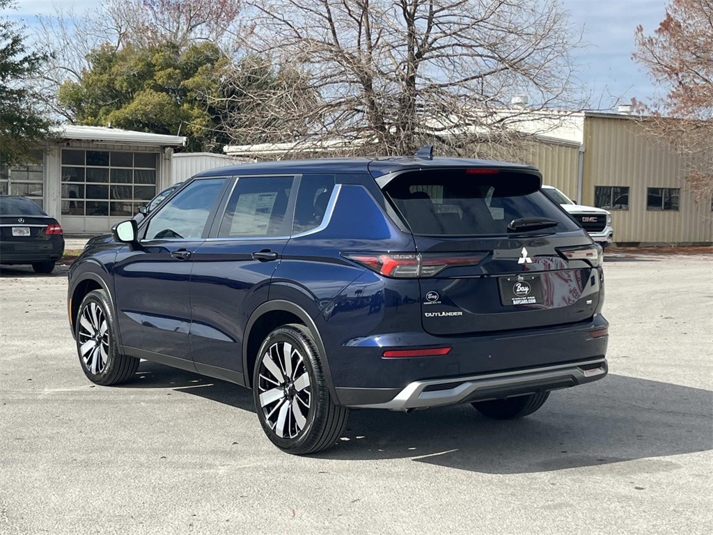 Blue 2026 Mitsubishi Outlander SE FWD CVT 1.5L I4 Turbocharged DOHC 16V LEV3-SULEV30 174hp 3rd row seats: split-bench, 4-Wheel Disc Brakes, 8 Speakers, ABS brakes, Air Conditioning, Alloy wheels, AM/FM radio: SiriusXM, Android Auto & Apple CarPlay, Auto High-beam Headlights, Auto-dimming Rear-View mirror, Automatic temperature control, Brake assist, Bumpers: body-color, Driver door bin, Driver vanity mirror, Dual front impact airbags, Dual front side impact airbags, Electronic Stability Control, Emergency communication system: Mitsubishi Connect w/ 24-month trial, Exterior Parking Camera Rear, Four wheel independent suspension, Front anti-roll bar, Front Bucket Seats, Front Center Armrest w/Storage, Front dual zone A/C, Front fog lights, Front reading lights, Fully automatic headlights, Garage door transmitter: HomeLink, Heated door mirrors, Heated Front Bucket Seats, Heated front seats, Illuminated entry, Knee airbag, Leather Shift Knob, Leather steering wheel, Low tire pressure warning, Navigation System, Occupant sensing airbag, Outside temperature display, Overhead airbag, Overhead console, Panic alarm, Passenger door bin, Passenger vanity mirror, Power door mirrors, Power driver seat, Power Liftgate, Power steering, Power windows, Radio data system, Radio: AM/FM 12.3" Navigation w/Smartphone-Link, Rain sensing wipers, Rear anti-roll bar, Rear seat center armrest, Rear side impact airbag, Rear window defroster, Rear window wiper, Reclining 3rd row seat, Remote keyless entry, Security system, Speed control, Speed-Sensitive Wipers, Split folding rear seat, Spoiler, Steering wheel mounted audio controls, Synthetic Leather Seating Surfaces, Tachometer, Telescoping steering wheel, Tilt steering wheel, Traction control, Trip computer, Turn signal indicator mirrors, Variably intermittent wipers, Wheels: 20" Two-Tone Alloy.