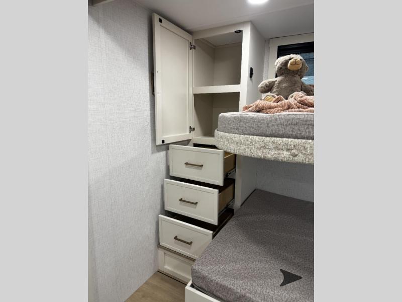 • Private Rear Bunkhouse with Storage & USB Ports