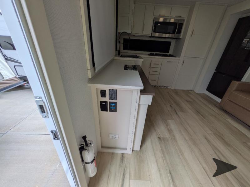If you’re searching for a premium lightweight travel trailer with high-end comfort and standout storage, look no further than the 2026 Brinkley Model I 275 travel trailer. Ideal for couples or small families, this RV blends elegant design with smart functionality for both weekend escapes and long-term travel. The spacious rear kitchen features residential-style appliances, a three-burner stovetop, a 30” convection microwave, a 12V 12 cu. ft. refrigerator, a hidden trash bin, and a Stow N’ Go paper towel holder. A deep pantry with built-in drawers and a 110V outlet makes it easy to store kitchen appliances, snacks, and cooking essentials. In the center living area, enjoy the open feel provided by the slide-out theater seating and pull-out dining table with hidden storage. When it’s time to wind down, the tri-fold sofa converts to a comfortable guest bed. The spacious bathroom includes a 42" x 30" shower with a seat and a Maxxair fan, while the front private bedroom delivers true residential comfort with a king-size bed and MaxSpace™ Split-Level Wardrobe for organized storage. Outside, enjoy your favorite music with exterior speakers and relax under the 19’ electric awning with LED lights. The drop-frame chassis provides maximum storage space, while the Road Armor suspension system and Demco EZ Latch coupler ensure smooth, secure towing. With its automotive-grade paint, Euro frameless windows, full-width LED pass-thru lighting, and CraftSense™ wood trim interior, the 2026 Brinkley Model I 275 redefines what a luxury travel trailer should be—residential comfort meets road-ready innovation.