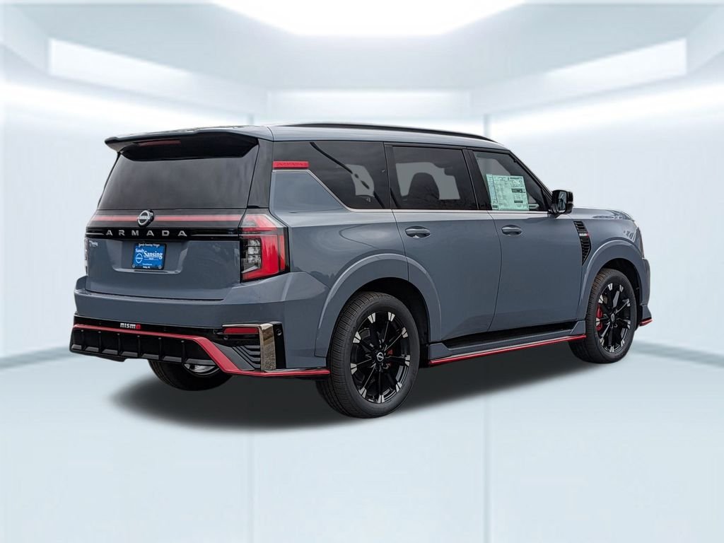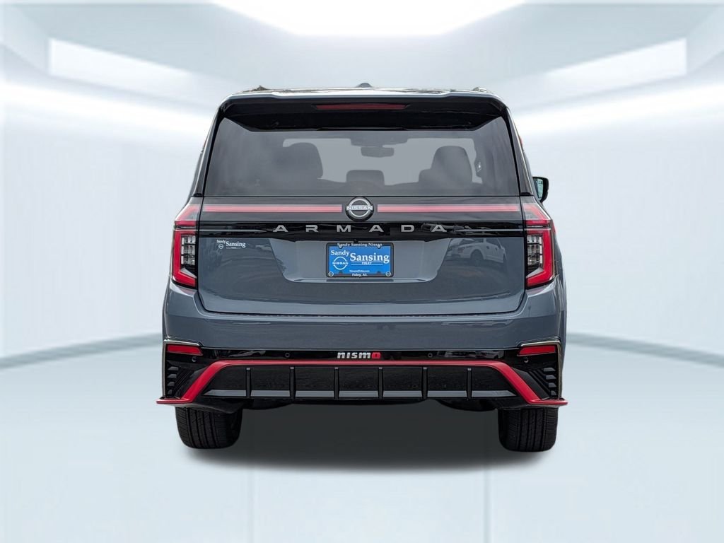Sandy Sansing Purchases includes A Lifetime Limited Warranty for all Vehicles With less the 60,000 miles and under 5 Years Old. 2026 Nissan Armada NISMO 4WD, 12 Speakers, 3rd row seats: split-bench, 4-Wheel Disc Brakes, ABS brakes, Adaptive suspension, Air Conditioning, Alloy wheels, AM/FM radio: SiriusXM w/360L, Anti-whiplash front head restraints, Apple CarPlay/Android Auto, Auto High-beam Headlights, Auto tilt-away steering wheel, Auto-dimming door mirrors, Auto-dimming Rear-View mirror, Auto-leveling suspension, Automatic temperature control, Brake assist, Bumpers: body-color, Compass, Delay-off headlights, Driver door bin, Driver vanity mirror, Dual front impact airbags, Dual front side impact airbags, Electronic Stability Control, Emergency communication system: NissanConnect Services, Four wheel independent suspension, Front anti-roll bar, Front Bucket Seats, Front Center Armrest, Front dual zone A/C, Front fog lights, Front reading lights, Fully automatic headlights, Garage door transmitter: HomeLink, Genuine wood dashboard insert, Heated door mirrors, Heated Front Bucket Seats, Heated front seats, Heated steering wheel, HVAC memory, Illuminated entry, Knee airbag, Leather steering wheel, Low tire pressure warning, Memory seat, Navigation system: Google Maps, NISMO Carpeted Floor Mats, Nismo Suede Seat Trim, Occupant sensing airbag, Outside temperature display, Overhead airbag, Overhead console, Panic alarm, Passenger door bin, Passenger vanity mirror, Power door mirrors, Power driver seat, Power Liftgate, Power moonroof, Power passenger seat, Power steering, Power windows, Premium Paint, Radio: NissanConnect with SiriusXM 360L, Rain sensing wipers, Rear air conditioning, Rear anti-roll bar, Rear reading lights, Rear window defroster, Rear window wiper, Reclining 3rd row seat, Remote keyless entry, Security system, Speed control, Speed-sensing steering, Speed-Sensitive Wipers, Split folding rear seat, Spoiler, Steering wheel memory, Steering wheel mounted audio controls, Tachometer, Telescoping steering wheel, Tilt steering wheel, Traction control, Trip computer, Turn signal indicator mirrors.