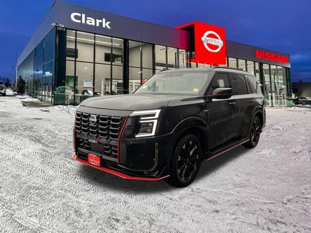 2026 Nissan Armada Nismo Black Diamond Pearl 4WD 3.5L DOHC 9-Speed Automatic. Clark Nissan has what you want! Visit us at https://www.clarknissankalispell.com, call 406-755-2277, or like us on Facebook at https://www.facebook.com/clarknissankalispell. See dealer for details. Although every reasonable effort has been made to ensure the accuracy of the information contained on this site, some specifications, rebates, and pricing are provided by third-party vendors. In the event of an error the dealer reserves the right not to sell. A documentary service fee of up to $499 may be added to the sale price or capitalized cost. Prices exclude tax, title, and license.