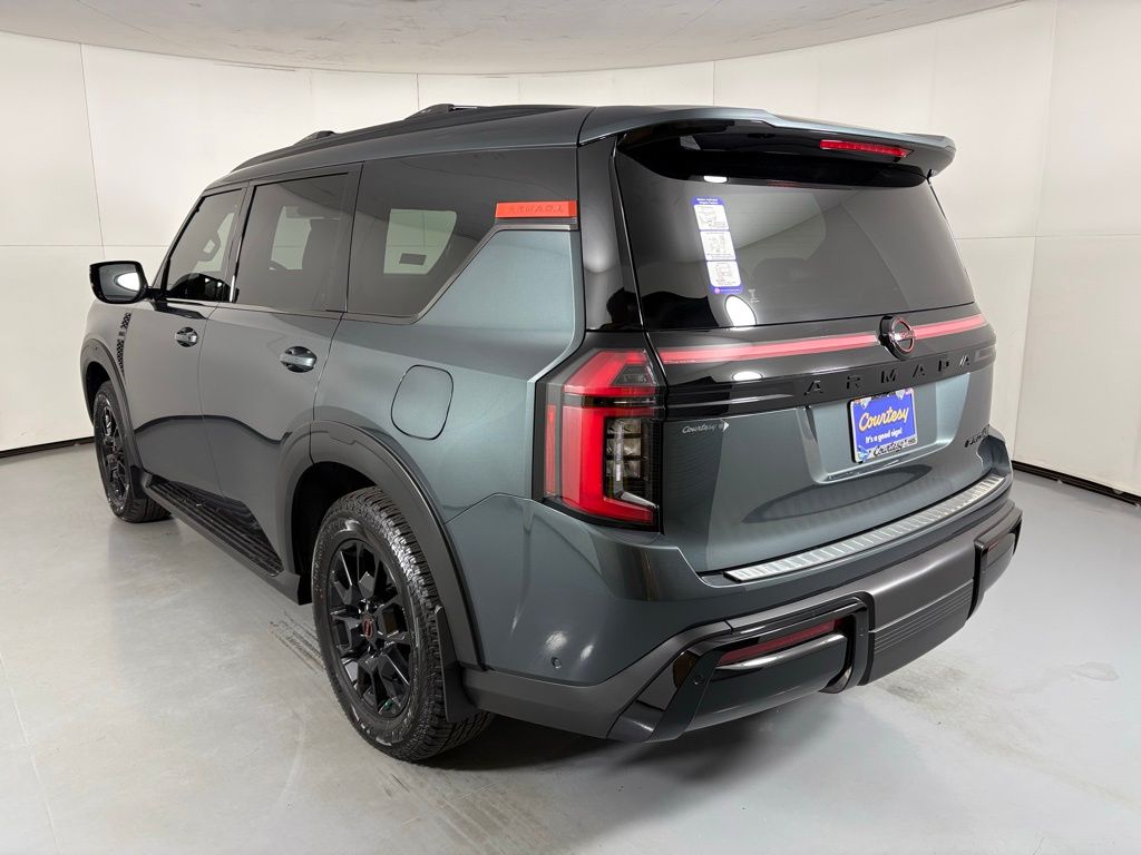 Sales price is plus tax, title, license, and $599 Doc fee, and dealer installed accessories. All New & Used Courtesy vehicles come pre-equipped with Lifetime Window Tint for $499, providing 99% UV protection and long-term interior preservation. 360Shield Ceramic Coating is included for $399, offering durable exterior and interior protection. The CarRx GPS App adds connected driving and theft protection for $399, and Door Edge & Handle Cup Protection helps maintain a like-new appearance for $299. Nitrogen for Life is included, and trucks feature a Spray-In Bedliner for $995 when applicable. Alpine Metallic 2026 Nissan Armada PRO-4X 4WD 9-Speed Automatic 3.5L DOHC.