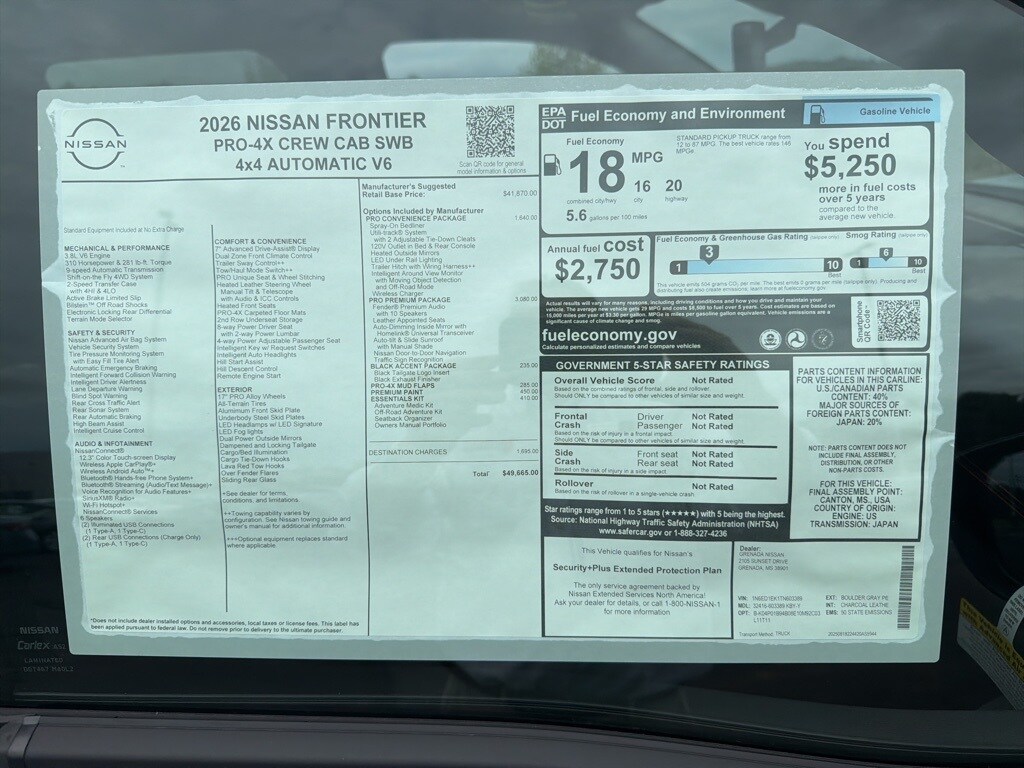 Boulder Gray Pearl 2026 Nissan Frontier PRO-4X 4WD 9-Speed Automatic with Overdrive 3.8L DI DOHC 24V V6 4WD.