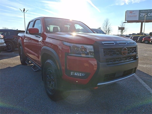 Frontier PRO-4X, 4D Crew Cab, 3.8L DI DOHC 24V V6, 9-Speed Automatic with Overdrive, 4WD, Red Alert, Steel, 120V Power Outlet in Bed, 120V Power Outlet in Rear Center Console, Auto-Dimming Mirror, Auto-Tilt & Slide Sunroof with Manual Shade, Bed Under-Rail Lighting, Fender Premium Audio System with 10 Speakers, Heated Front Seats, Heated Outside Mirrors, Heated Steering Wheel, HomeLink UGDO, Intelligent Around View Monitor (I-AVM), Leather Seat Trim, Nissan Door-to-Door Navigation, Partial Under-Seat Storage Delete, PRO Premium Package, PRO-4X Convenience Package, Remote Engine Starter, Spray-In Bedliner, Traffic Sign Recognition (TSR), Trailer Hitch with Wiring Harness, Utili-Track System, Wireless Charging for Personal Devices. 4D Crew Cab 2026 Nissan Frontier PRO-4X Red Alert. When it comes to finding the perfect new Nissan car, truck, or SUV, look no further than Ciocca Nissan in York, PA. As your trusted Nissan dealer, we offer a vast selection of the latest Nissan models to cater to your every need and desire. Whether you're in York, Hanover, Lancaster, or Harrisburg, our dealership is here to serve you with the utmost dedication and expertise. We're committed to helping you find the ideal Nissan that suits your lifestyle, and we're just a visit away. Don't miss the opportunity to experience the Nissan excellence. Visit us today and explore our extensive inventory at Ciocca Nissan in York, PA. Your new Nissan is ready and waiting for you! Price includes all applicable rebates, Additional discounts may apply, see dealer for details. $2500 - Nissan Customer Cash. Exp. 01/05/2026.